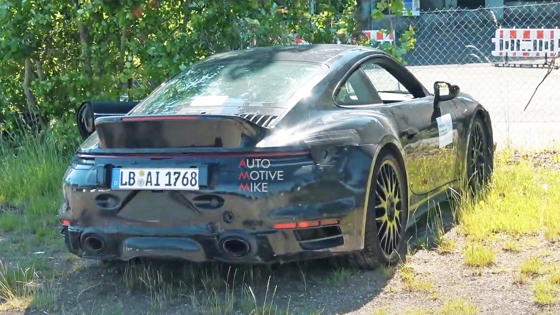 It looks like Porsche is testing a new car on the Nurburging this week, and judging by its aesthetics, it might be a bit of a throwback. What we suspect in a 992-generation 911 Turbo underneath features a ducktail spoiler similar to vintage Porsches of yesteryear, a roll cage in lieu of rear seats and a bunch of suspicious camo on the back bumper that hint at further changes.