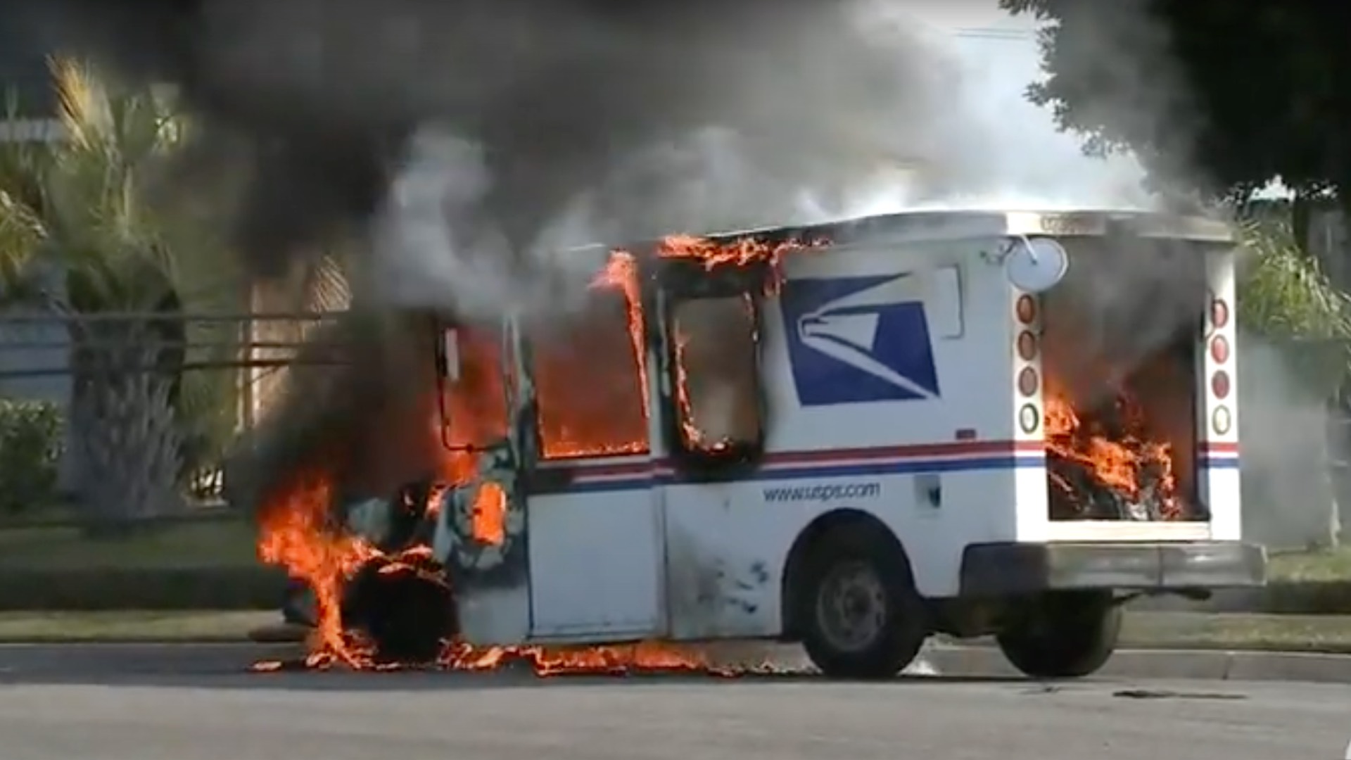 Less than 24 hours after that, in Newport News, Virginia, a letter carrier driving her mail truck heard a loud pop and smoke started to come out of the engine. She turned the truck off and by the time she got out, a neighborhood resident came running out of their home to tell her the truck was on fire.