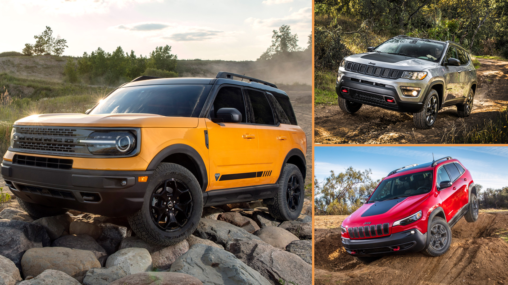 After many months of leaks, teasers, rumors, and delays, the 2021 Ford Bronco family is finally here. Along with the regular two- and four-door Broncos, Ford also unveiled the smaller Bronco Sport, a five-seat, four-door small crossover SUV with an off-road slant. It’ll still be a while until we can get our hands on the “Baby Bronco” and see how it stacks up to its competitors on the road and trail, but we thought it’d be helpful to see how it compares against its small-but-outdoorsy rivals from Jeep on paper.