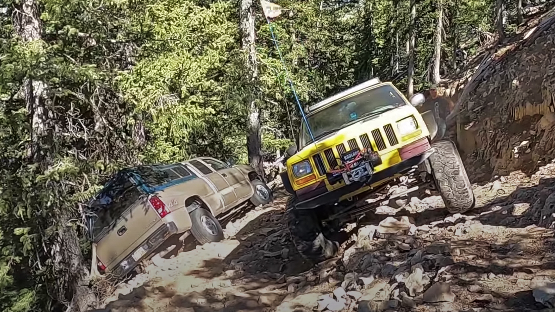 It didn’t help the rescue effort that the stuck vehicle—and I do mean stuck—was two hours into the wilderness on an off-roading trail. Half the trouble was actually getting to the place where the vehicle was stranded. And yes, even these professional recovery guys have mechanical issues. Their primary tow vehicle—a heavily modified XJ Jeep Cherokee—had problems with its exhaust and suspension during the journey to the stuck Silverado.