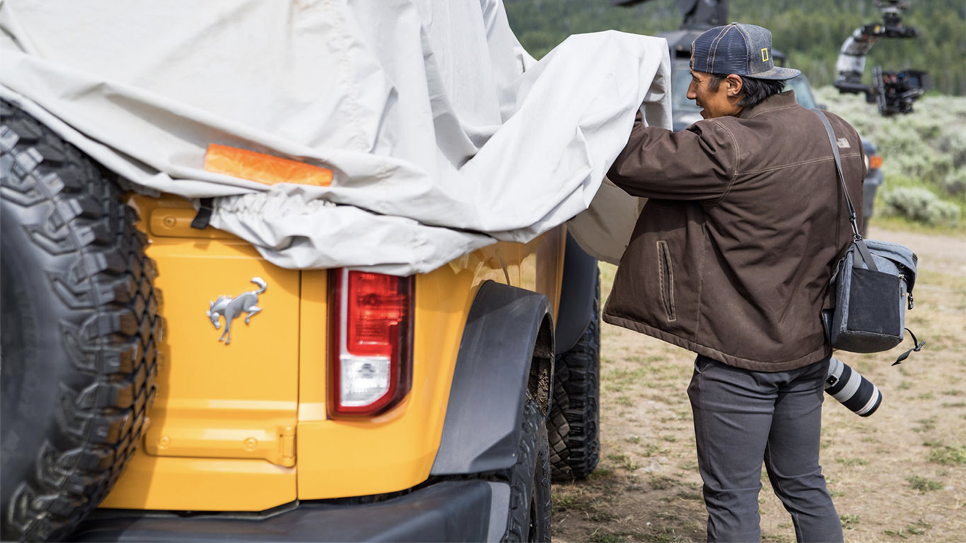 Jimmy Chin: I’ve been a longtime National Geographic photographer and filmmaker, and Free Solo was obviously released with National Geographic as the studio behind the film [which is now owned by Disney]. I think they just thought it was a very good fit, you know, given the idea and the themes of the campaign and a vehicle the Bronco. There were a lot of intersections that made it a good fit for me to creative-direct the spots. We brought on different and really talented directors for the spots. I worked on thinking about the ideas around the pieces and how we could just tie them all together in a way that fit this campaign.