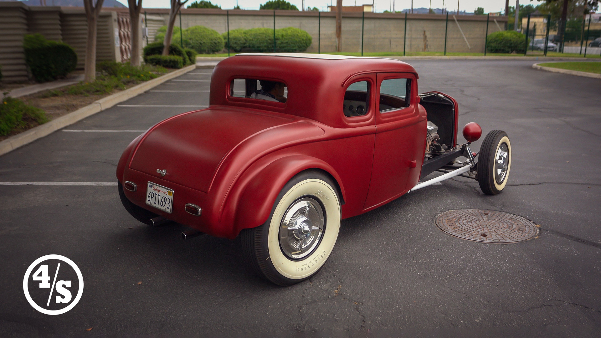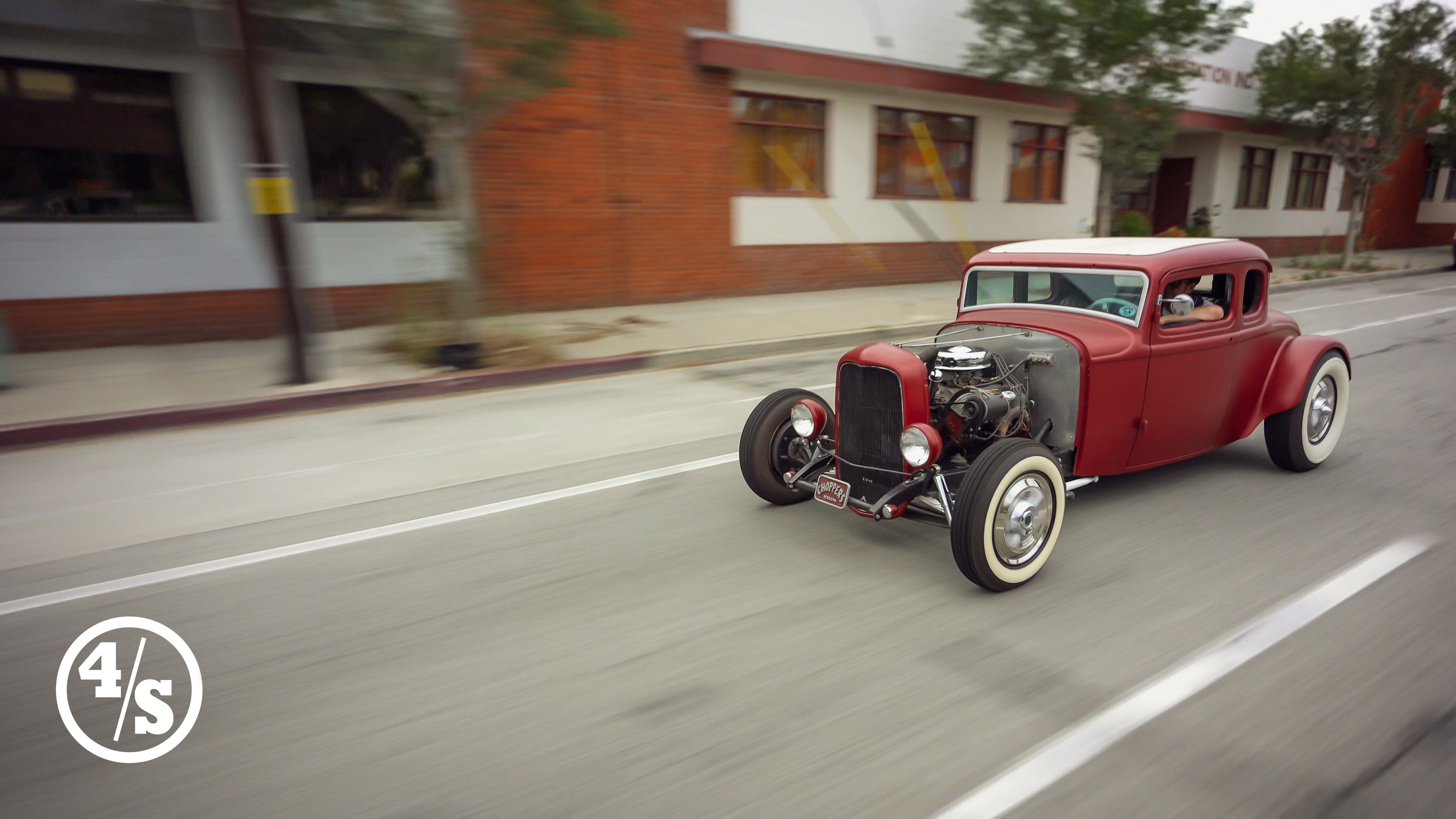 This video stars a 1932 Ford five-window coupe owned by Jon Fisher, aka Jon Fish, in Burbank, California. This ’32 Ford hot rod was originally built by Valley Custom cars during the mid-1950s. According to HotRod.com, Valley Custom was the shop to be seen in during the 1950s. They built mostly custom cars and worked with basic tools fabricating a lot of their work by hand.