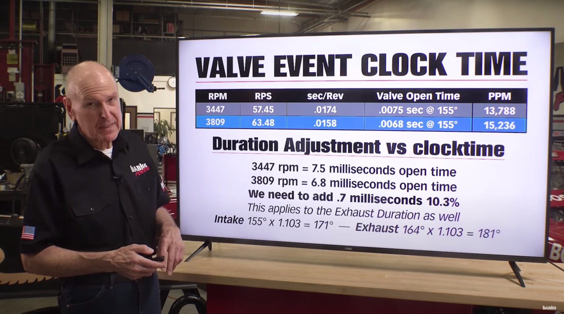 The hot-rodding pioneer does a stellar job explaining these tweaks and how they result in more usable output. Peak horsepower is made at 3,809 rpm, or nearly 400 rpm higher than their last run, and Banks tells how this affects important parameters like revolutions per second, valve open time and power pulses per minute. The engineering speak gets pretty heavy here—that’s what you came for, right?