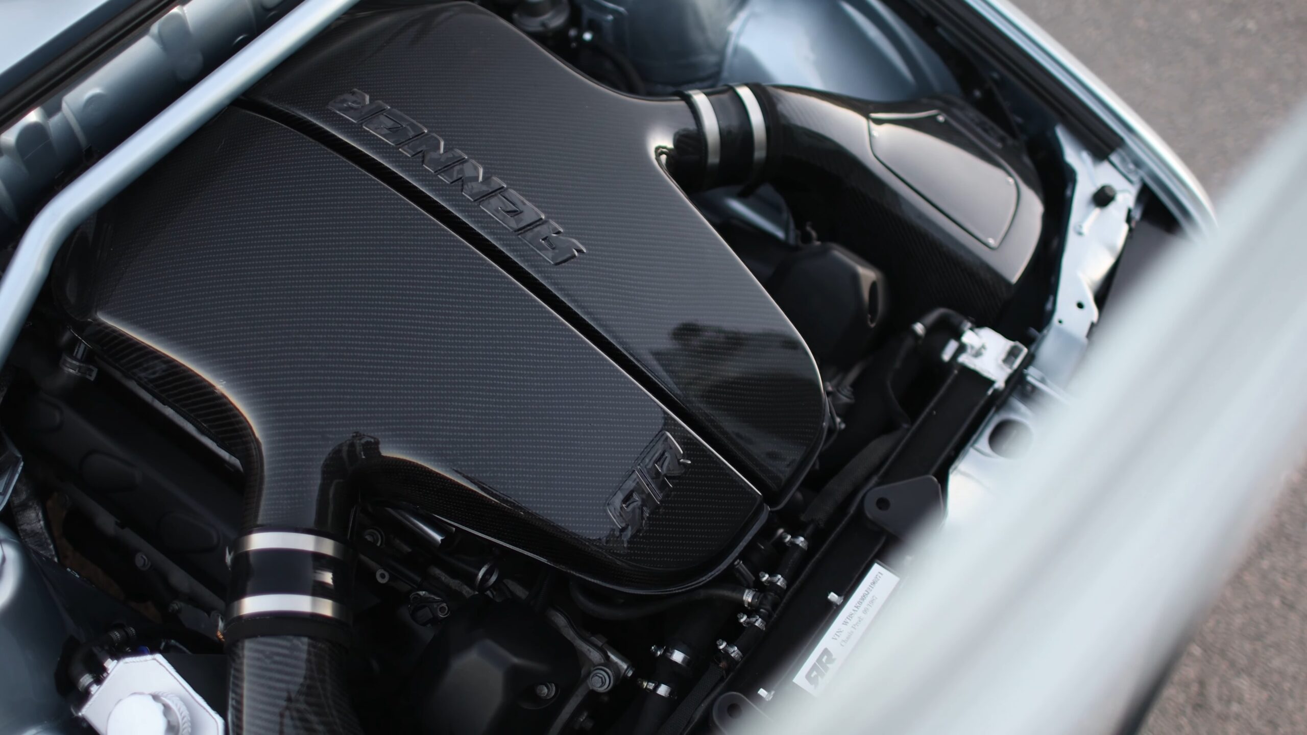Naturally, shoehorning a V10 into an engine bay built for fours and sixes is no mean feat. There’s a mere quarter of an inch of space between the firewall and the engine components. Renner had to reinforce the chassis to take the added weight, and modified the suspension to suit. The car runs coilovers and custom swaybars tuned to the new configuration.