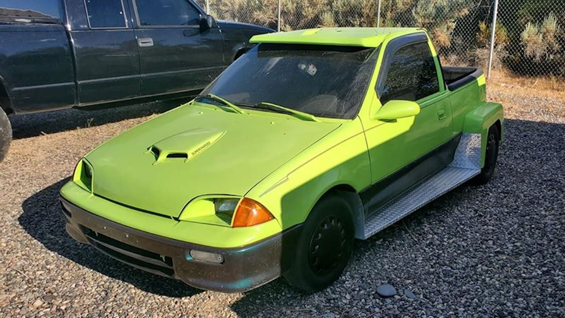 Listed for sale on Facebook Marketplace for $2,500, this lime-green 1993 Geo Metro “Truccar” is appropriately described by its seller as “a very unique vehicle.” Indeed, there aren’t many pickup-converted Geo Metros, let alone examples of duallys, and not without reason.