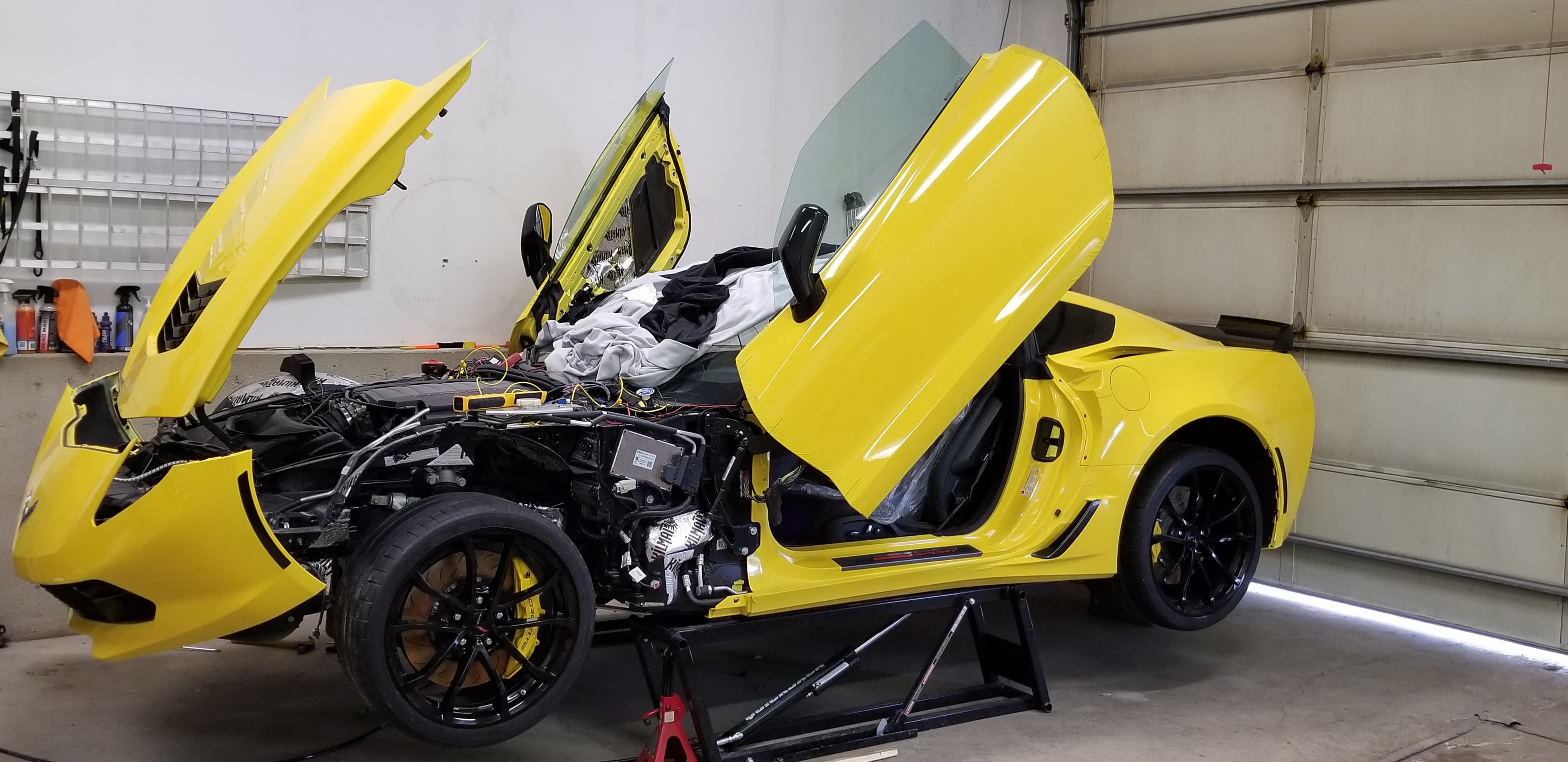 We got in touch with Schickerowski who sent us pictures of his pride and joy—which now features Lamborghini-style vertical doors that he and a buddy installed themselves—and told us a little more about why he chose the ‘Vette.