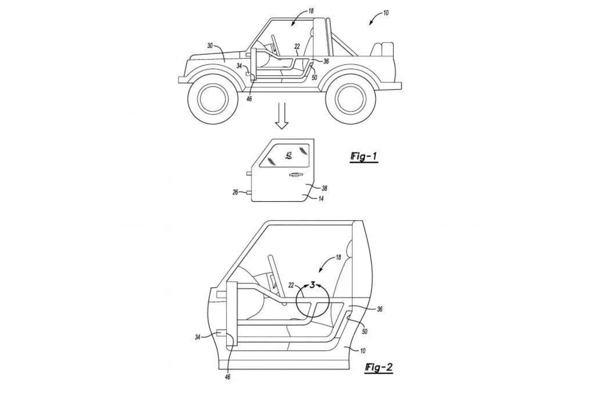 Last year, we took an in-depth look at nine removable door patents that Ford filed during Bronco development, which featured removable doors, an in-trunk stowable door system, tube doors, and tube doors with inflators on them, much like the airbag-equipped tube doors