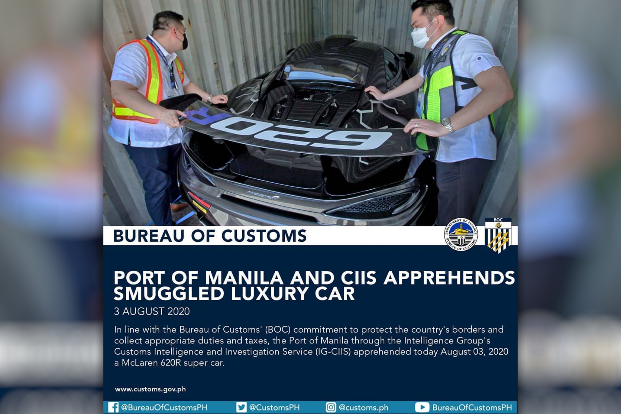 Also, this might go without saying, but the car has been seized by the Philippine Bureau of Customs. Officials say that “Port of Manila District Collector Michael Angelo Vargas immediately issued a warrant of seizure and detention on the shipment based on the recommendation of IG-CIIS. Allegedly the consignee Llorin Trading declared duties and taxes amounting to only Php 1,500,000 Million thus preventing the collection of Php 15,000,000 worth of revenues to the government.”