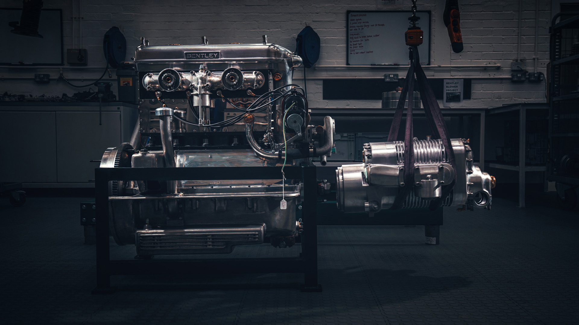 Bentley’s “Car Zero” engineering prototype is powered by the same W.O. Bentley 4½-liter four-cylinder design as the first blown Bentleys in 1929, complete with a remade Amherst Villiers supercharger.