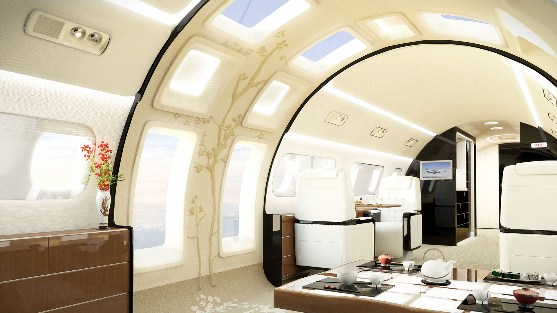 As nice as the views can be, windows in planes are kind of an engineering hindrance. They have less structural integrity than an equivalent steel or carbon fiber panel, and they weigh more, too, which decreases a plane’s fuel economy and performance. That’s why, on economy-minded commercial jets, the things are about the size of a face mask. But now, for the ludicrously wealthy, things are about to get a lot brighter (as it seems things always do: Brazilian airplane manufacturer Embraer is selling a $53 million Lineage 1000 private jet with a midsection comprised of large glass panels. The concept that displays the technology is called the Kyoto Airship, and it is nothing less than Japantastic. Nay—a Japantasy.