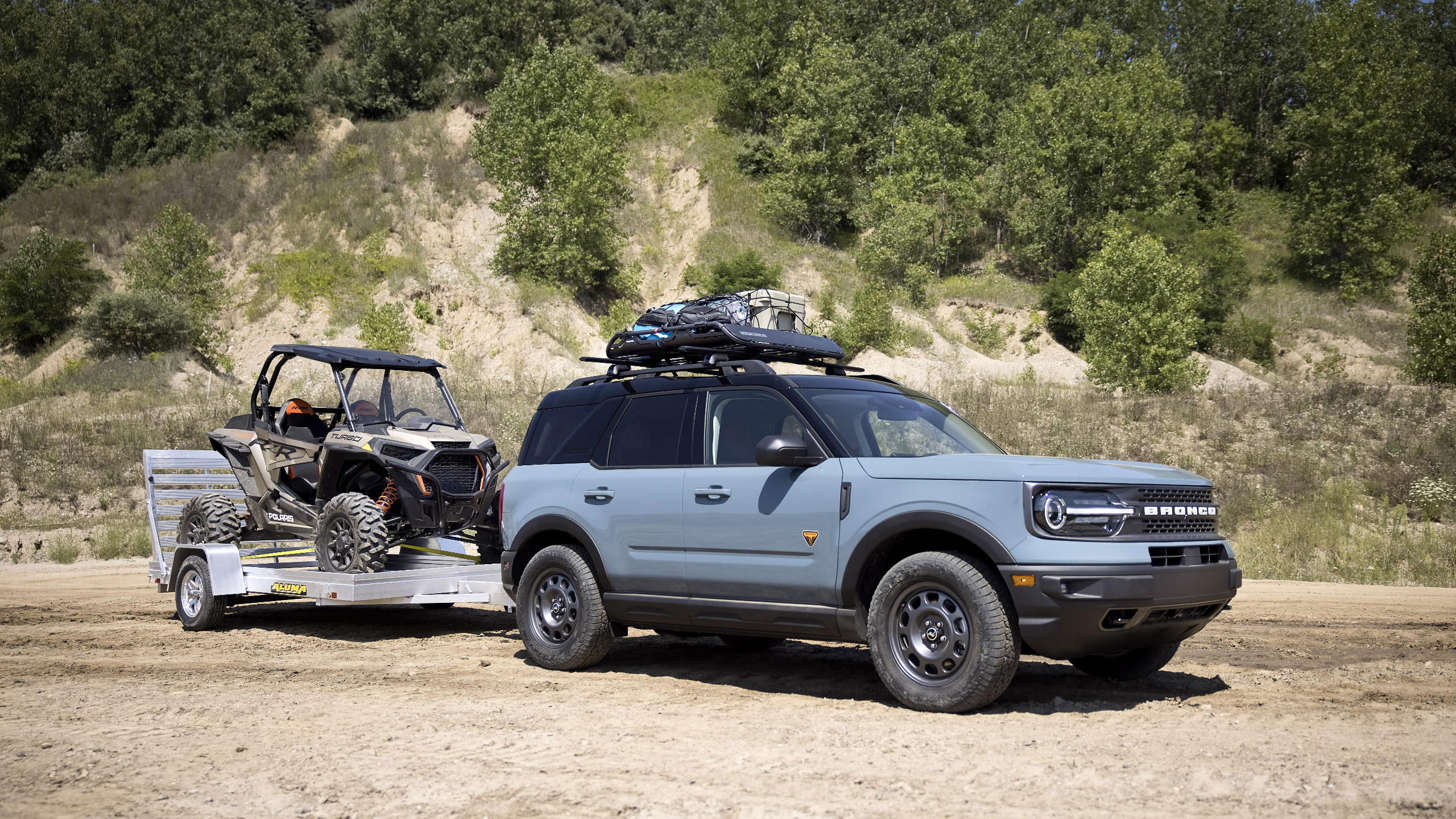 The third blue concept is creatively referred to as the “Bronco Sport TOW RZR,” because it uhh… tows RZRs. It’s pretty plain-jane, it has a similar roof system to the other cars—this time it’s referred to as a “basket” instead of a rack—and it, of course, has a Class II Trailer Tow Package to allow it to pull as much as 2,200 pounds safely. That’s not a ton, but it is enough for a lightweight UTV.