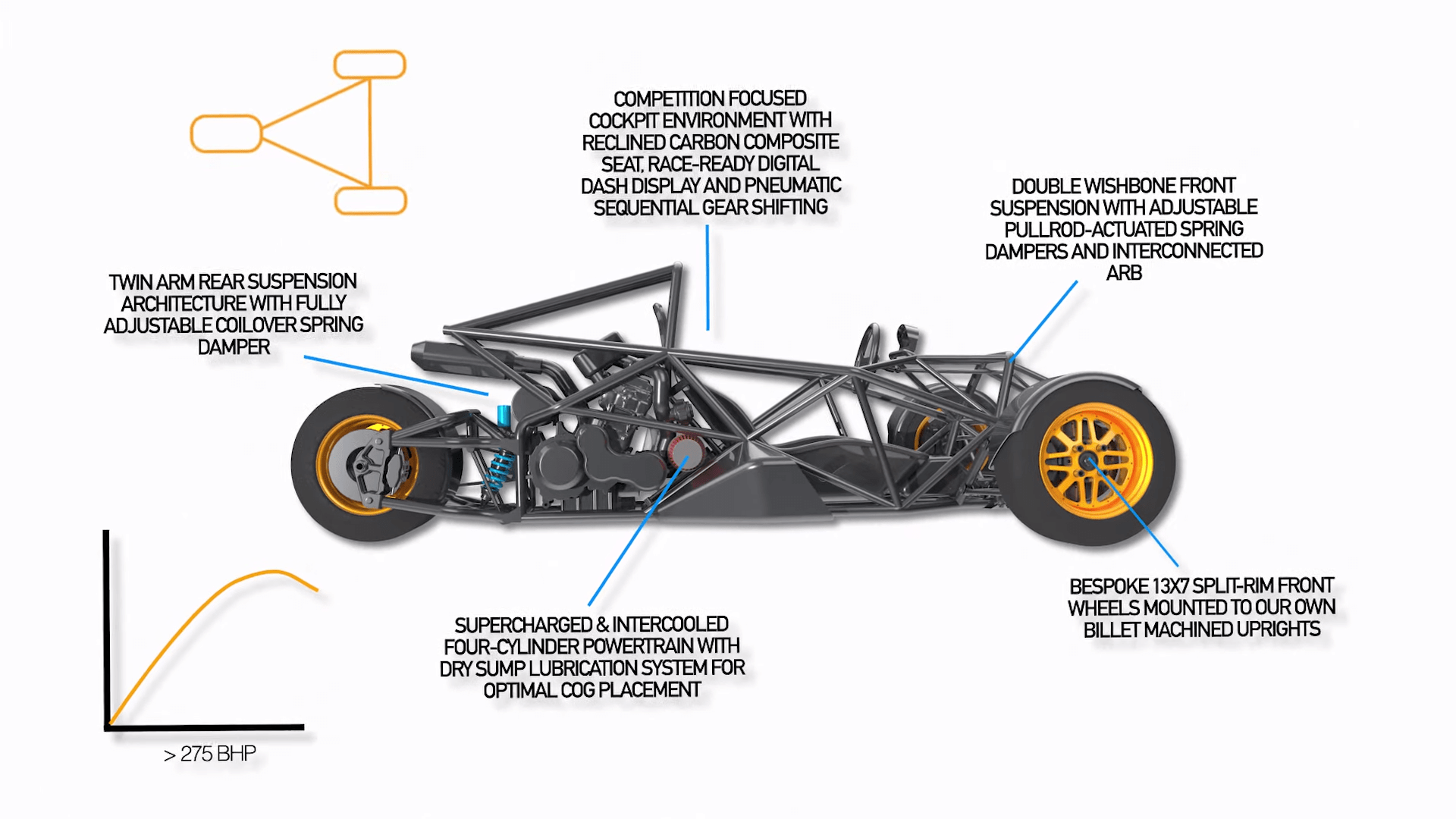 With Darkside aiming for a starting price of $16,400 for the 181-horsepower SS version, customers will still get a dry-sump engine acting as a semi-stressed member of the chassis, a six-speed sequential gearbox with a back-torque-limiting clutch, double-wishbone front suspension with adjustable roll stiffness, and a twin-arm setup at the rear with linkage-actuated coilover dampers.