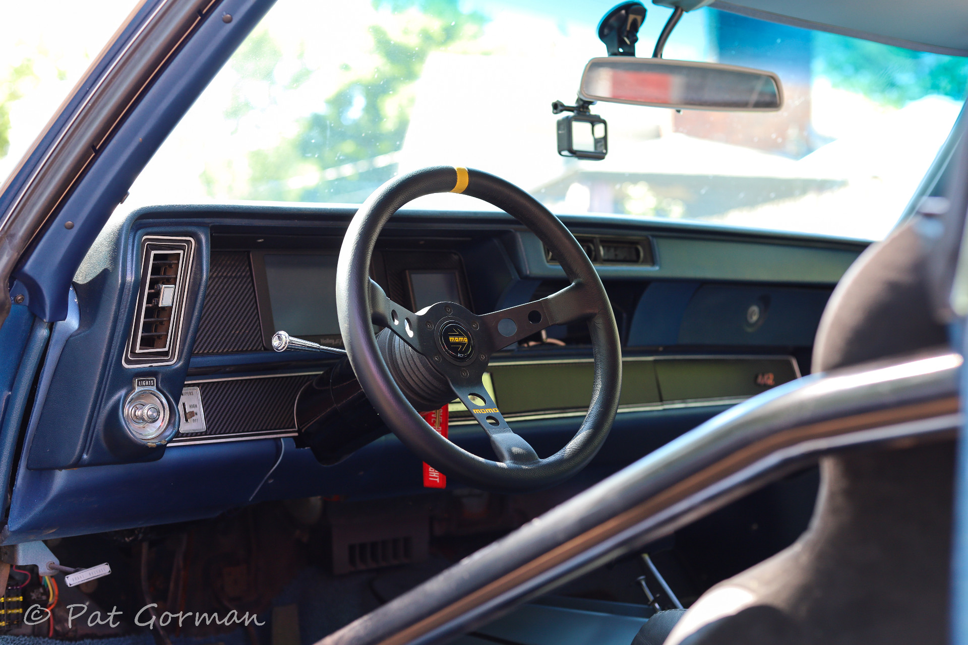 Rather than turn the Olds into a full restomod, Pat opted to keep the vibe as period-correct as possible. One would have to get on the ground and look under the wheel-well to admire all the work invested into this Cutlass S. A Competition Engineering half-cage with safety harnesses draped over a set of Corbeau CR1 bucket seats gives a taste, though.