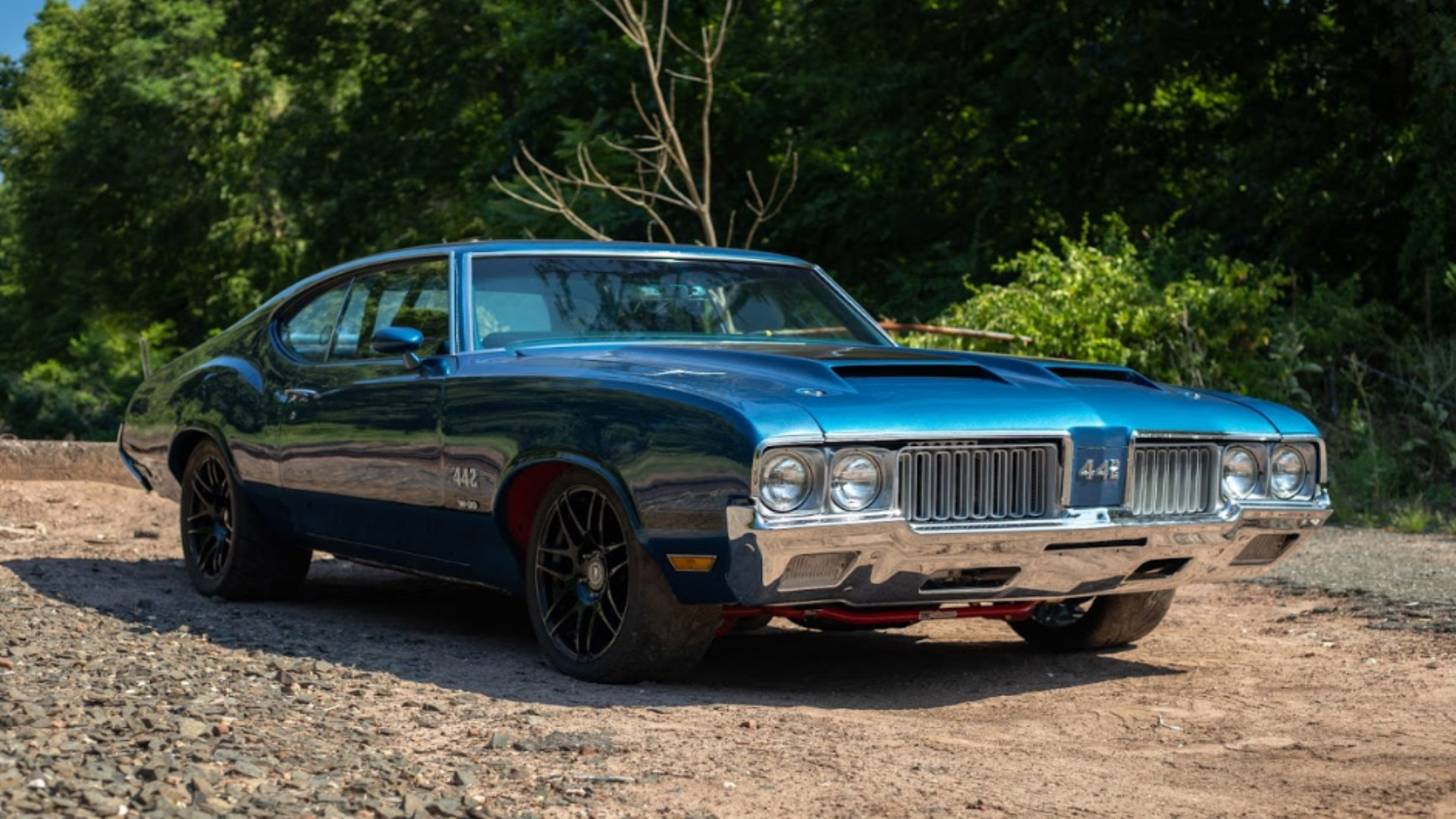 The Oldsmobile now wears Twilight blue and turns its wheels using a 455 V8 bored to 463 with Edelbrock heads, Eagle rods and crankshaft, SRP pistons and a Holly Sniper EFI. It manages to stay cool using an aluminum radiator with Derale dual electric fans. Finally for the powertrain, its sending all that twist to the rear wheels through a TH400 automatic transmission with a shift kit.