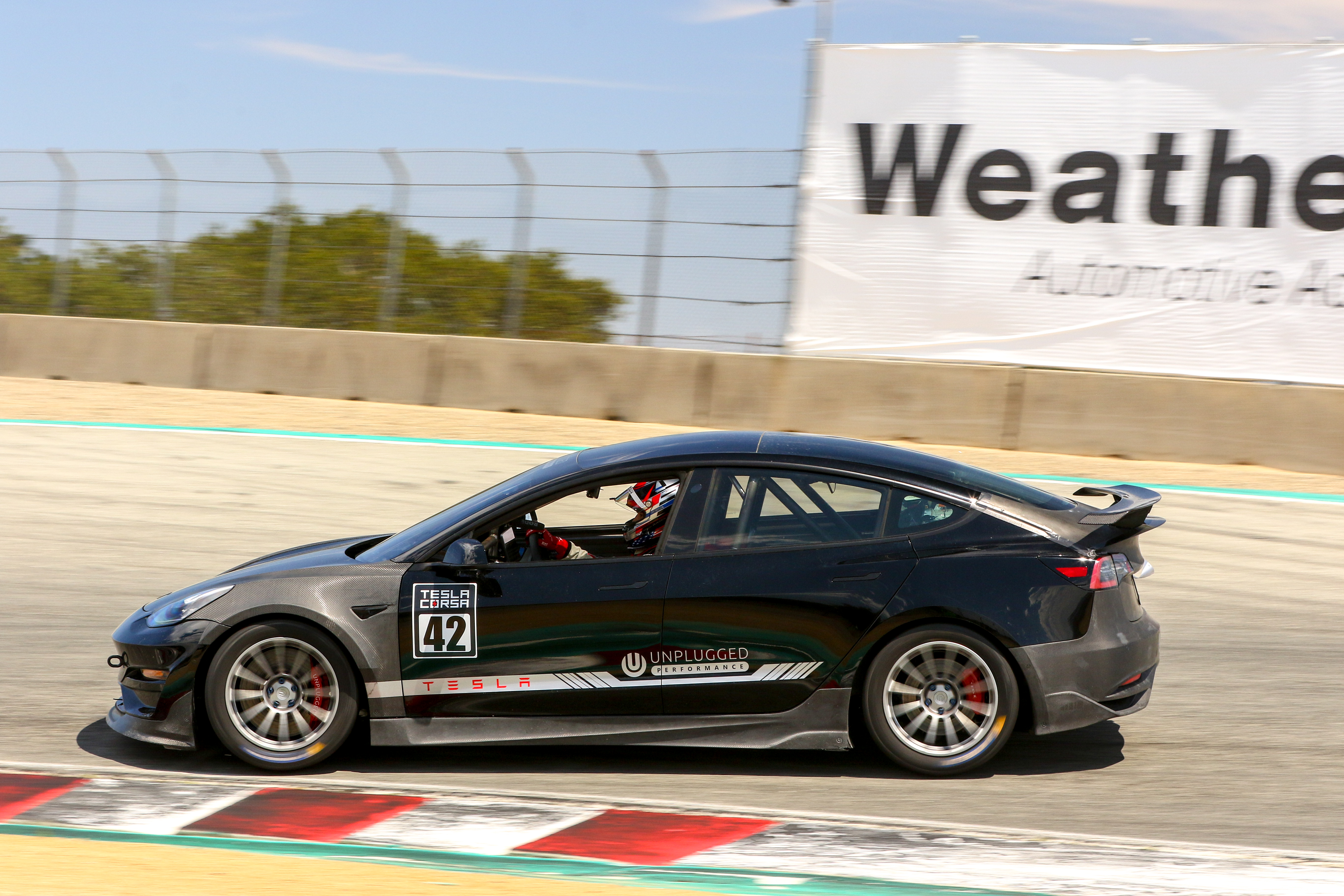 Last year, Tesla set impressive lap time records at Laguna Seca and the Nurburgring with a heavily modified Model S “Plaid” prototype, but a new Model 3 project from Unplugged Performance (UP) just broke one of those records in a big way. The SoCal Tesla tuning shop was testing its modified Model 3 as part of a warm-up to this year’s Pikes Peak, and accidentally ended up setting the four-door vehicle fastest lap record at Laguna Seca in the process.
