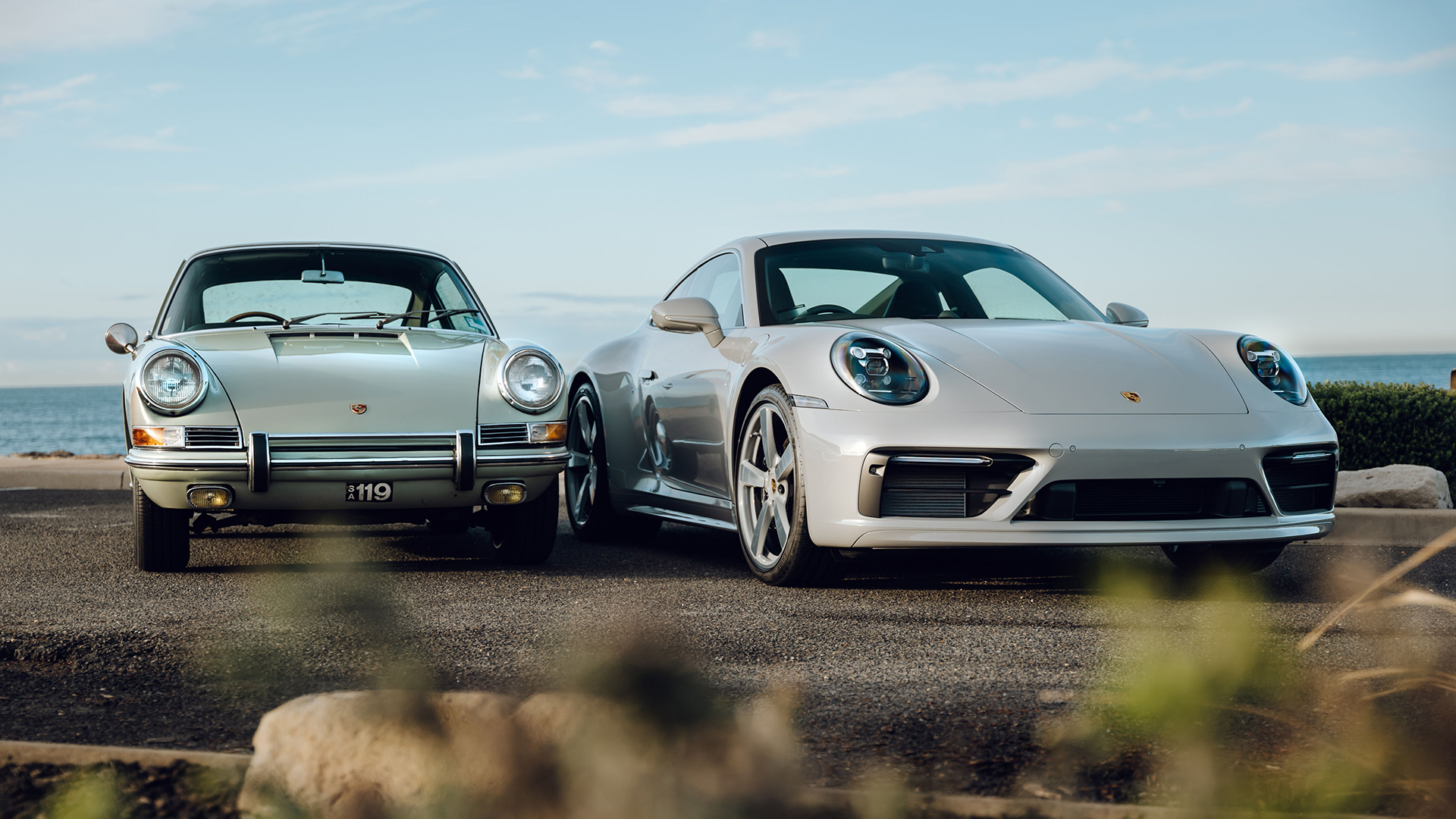 Fifty-five years later, Porsche Centre Melbourne and Sydney South teamed up to create a pair of matching Porsche Exclusive Manufaktur 911 Carrera S models inspired by that original ’65 in Stone Grey.