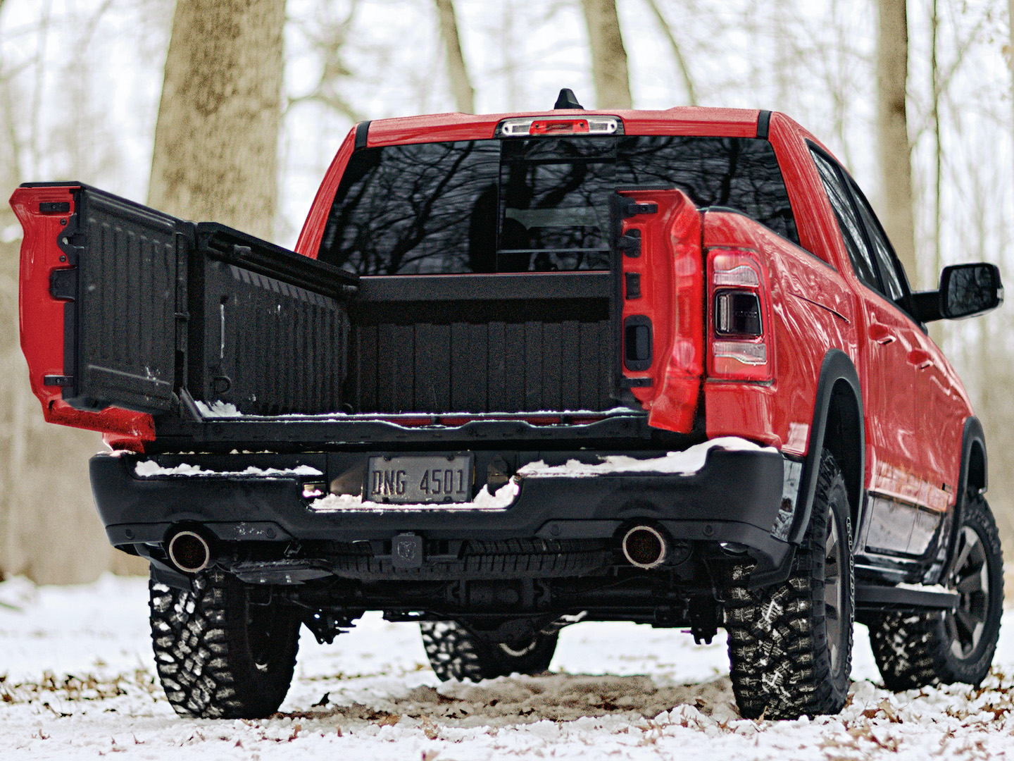 Citing “sources familiar with the project,” Ford Authority claims the Detroit giant “has benchmarked” the multi-use tailgates of its competitors, and is developing multiple concepts for its own tailgate. One such concept is said to be a barn door-style setup similar to Ram’s, but made from three sections rather than two, with the ability to fold out left, right, and as is tradition, downward.