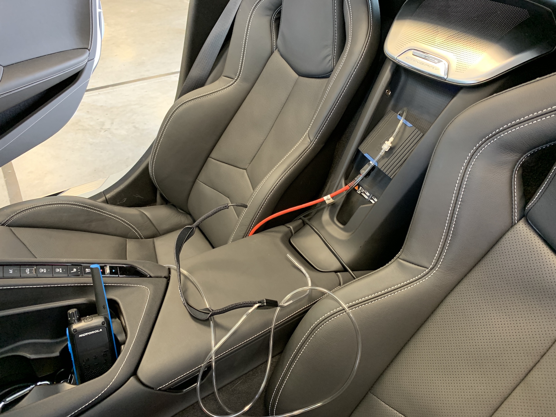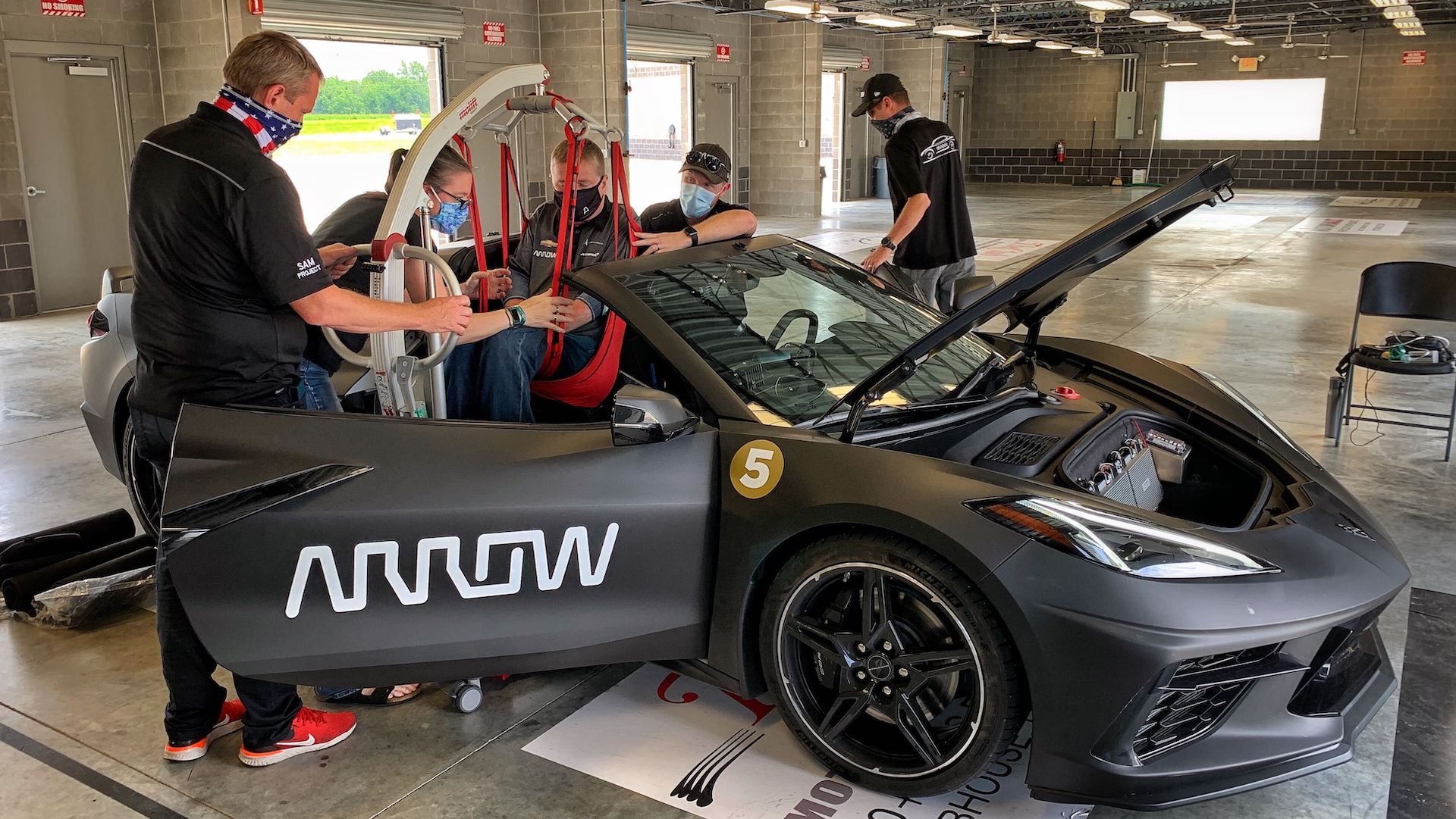 Finally, a quick check of what Arrow calls the “sip and puff” (the straw that goes in Schmidt’s mouth) must be checked to make sure it engages the brake and throttle systems. Of course, the latter gives Schmidt a chance to rev the C8 to its redline while parked—which judging by his loud laugh—he most definitely enjoys.