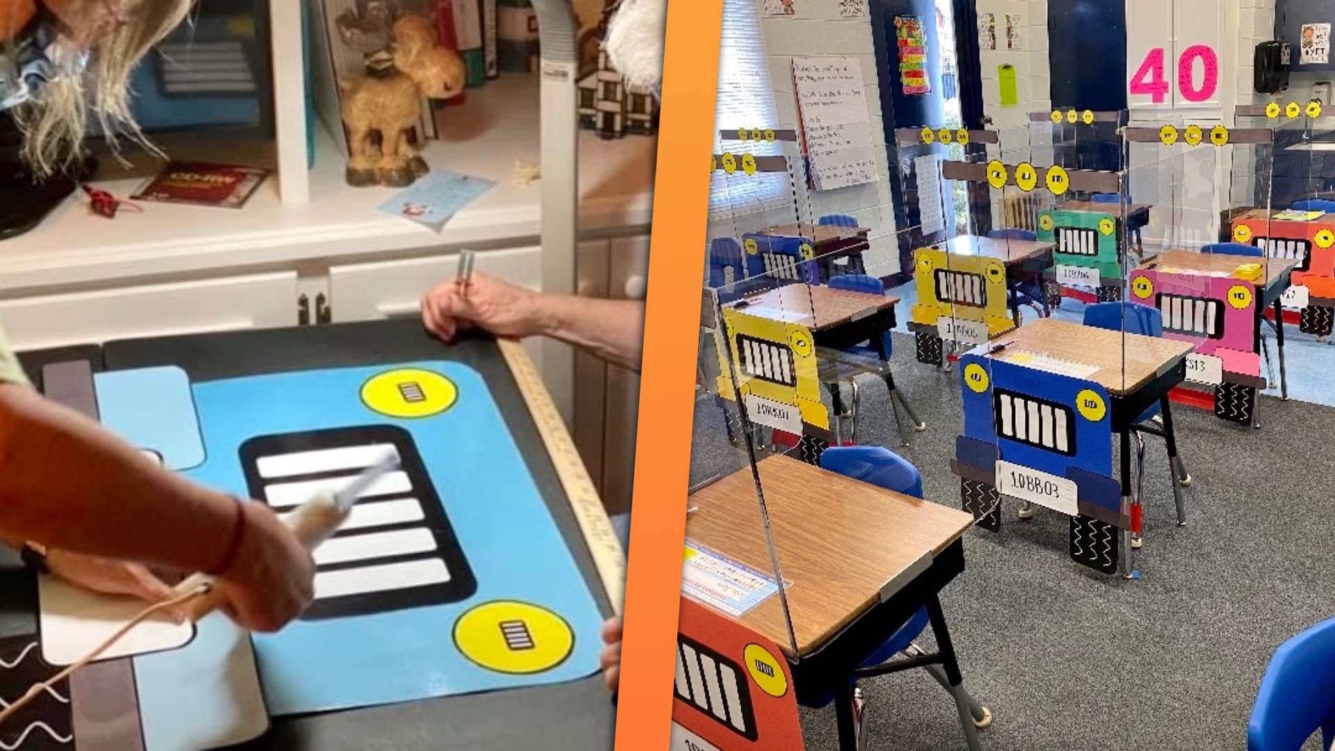 “Our school gave us plexiglass tri-folds, which we felt would overwhelm our little ones. So we took the design and turned them into little Jeeps,” said Martin in an interview with CNN. “We had a little meet-the-teacher session, and we gave them keys to their car, and told them, ‘just like in a motor vehicle, you have to stay in your car at all times, and wear a mask when you get out in case you come across hazardous conditions.’ So we’re playing on this vehicle concept to turn social distancing fun and more kid-friendly.”