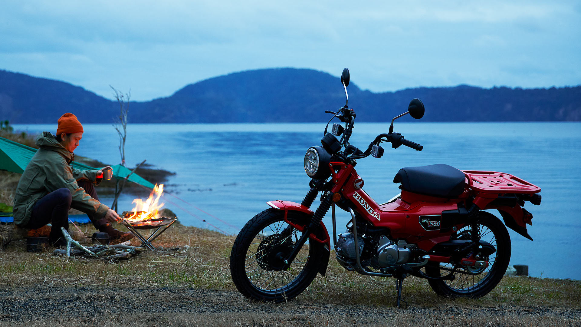 As you would expect, the engine is the same air-cooled, single-cylinder overhead-camshaft 125cc four-stroke with two valves. The air intake was raised higher and the exhaust upswept for enhanced low- and mid-range power. The gearbox also remains the same four-speed automatic as with the Super Cub, but additionally, there’s an engine guard as some extra protection for when the going gets rough.