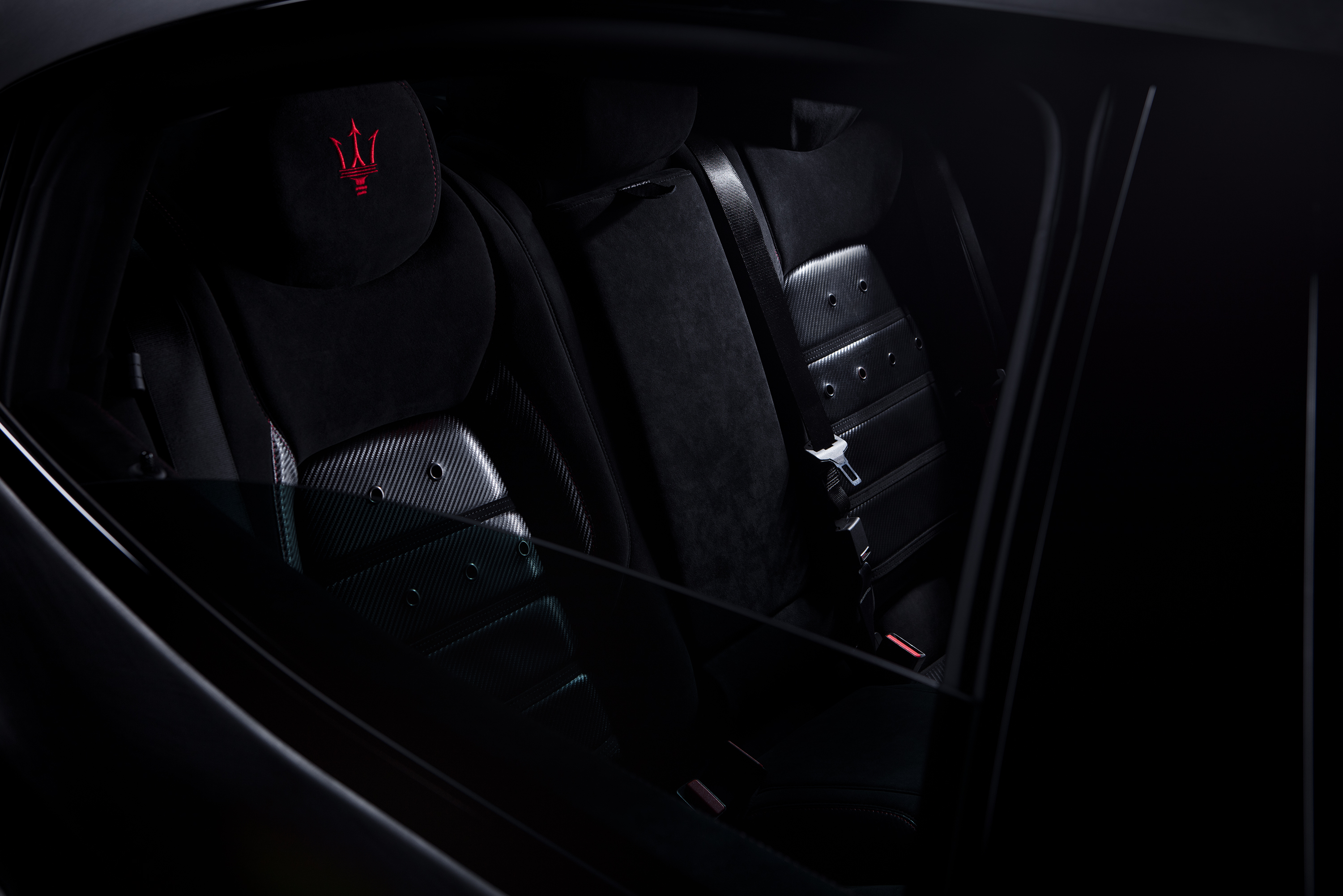 Inside, it’s only the driver getting a tan leather bucket seat, while the rest of the cabin is upholstered in black with contrasting vibrant red trident logos all over. Thanks to the makeover, this Ferrari-powered Ghibli is something else.