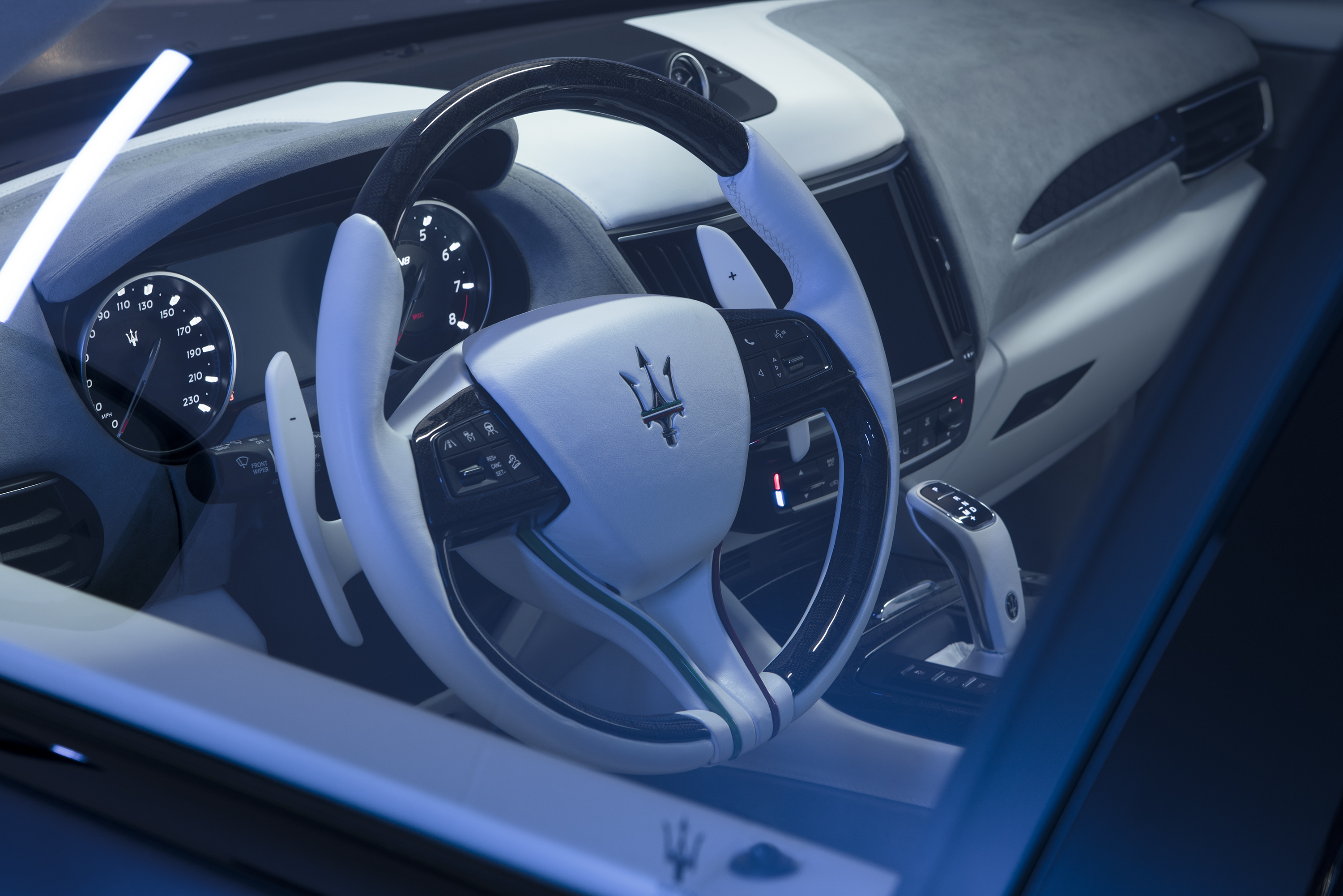 The second styling package is called Futura, but it’s hard to explain what that means looking at the Levante show car. Textured and matte surfaces, a rough satin paint finish and a custom interior, plus the promise of the latest technologies from an SUV first introduced in 2016 make your 590-horsepower Maserati Levante feel closer to your heart.