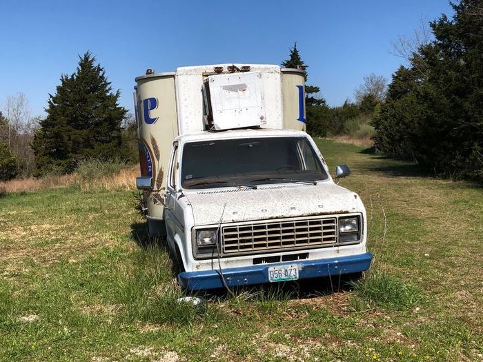 This beer truck started out as a 1982 Ford Econoline dually with a cutaway chassis, which Miller topped with a six pack-shaped refrigeration unit. Said stack of cans wears a Miller Lite livery and was once used to distribute cases of beer—if you can call it that. Under new ownership, though, it could be re-decorated and equipped with a more efficient, modern refrigeration system.