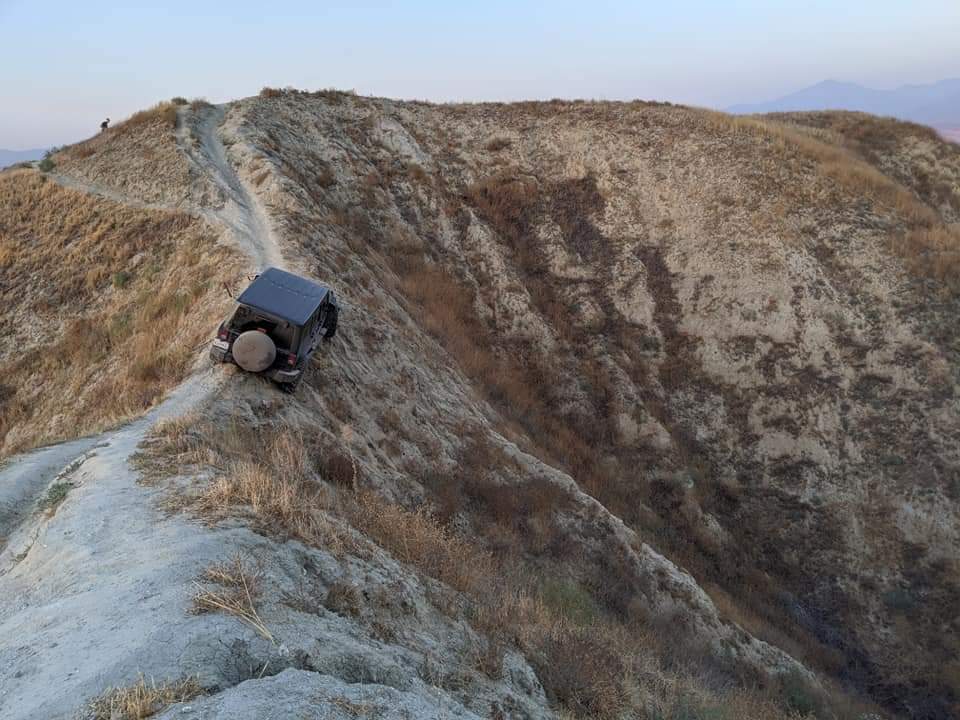 “I would start with a round 7ft metal fence post and hammer that into the soft dirt angling away from the Jeep, do this about 20ft away from the rear. The post should be buried at least 6.5ft deep leaving the post hollow. Fill the post 1/2 with dirt, then slide a 4ft reinforced steel bar with a mount. This should be angled away from the rear of the jeep. Next either use a thick ratcheting belt and securely connect to the Jeep and slowly pull it out, or mount a rear wench. Very dangerous but that’s how I would get it out if I couldn’t take another vehicle up there.