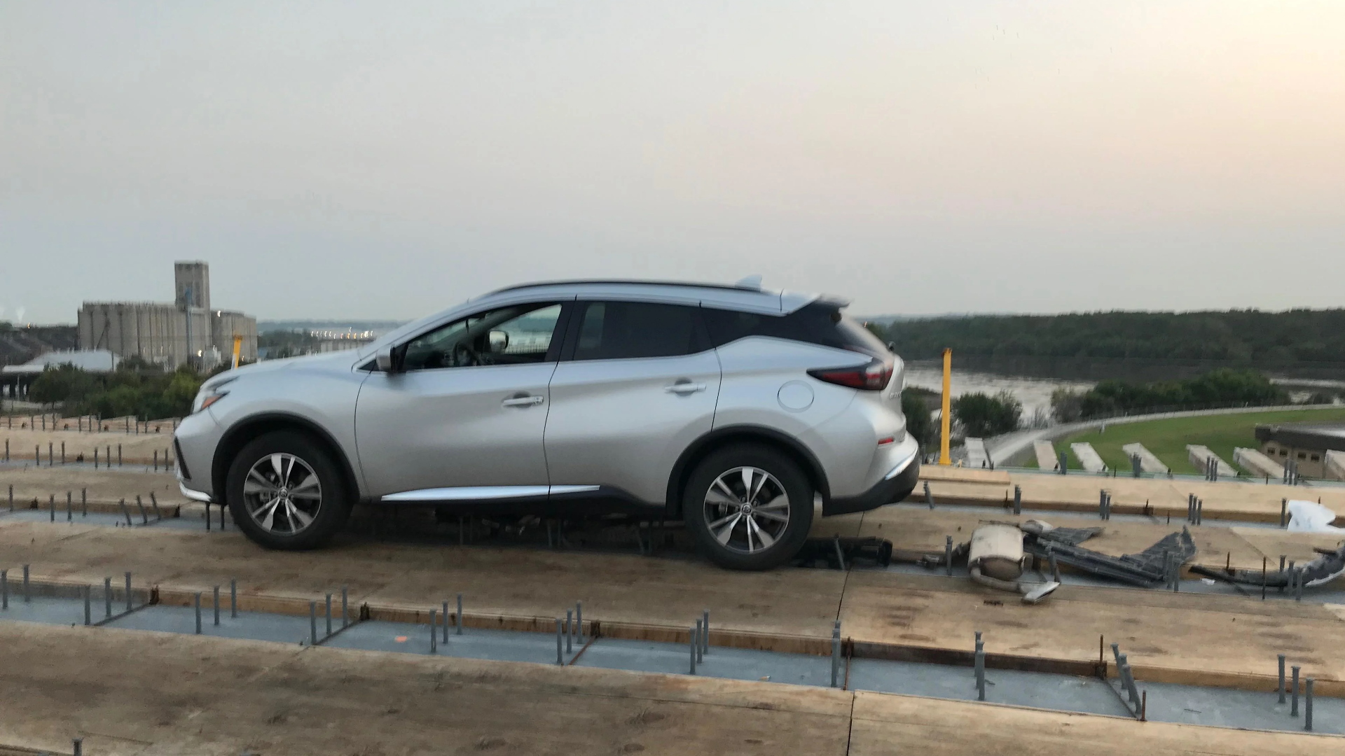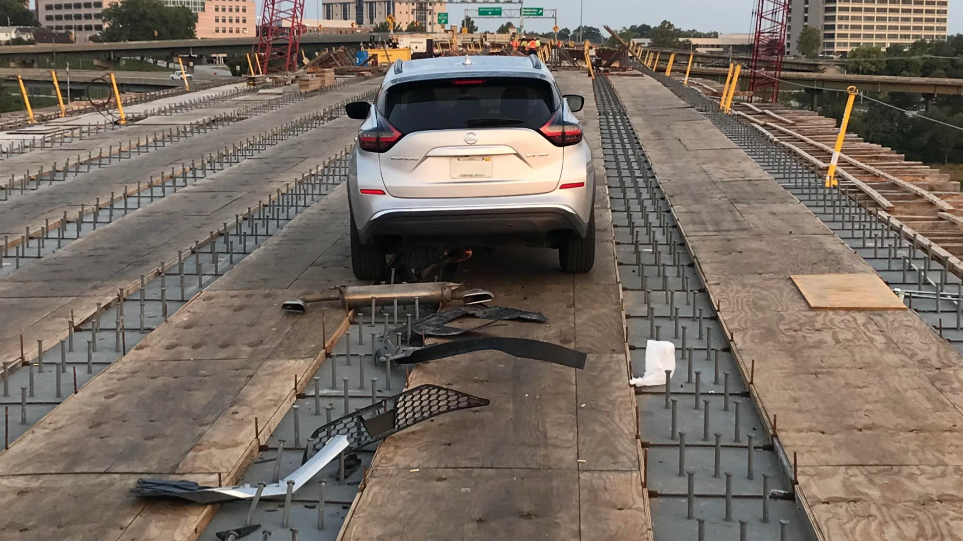 Here at The Drive, we always like a twist on the classic “man drives into a construction zone” joke. And today, folks, we got a good one. Earlier this week, the driver of this Nissan Murano apparently failed to heed barriers and signs that a construction zone was ahead and attempted to cross the currently unfinished westbound section of the Lewis and Clark Viaduct Bridge in Kansas City.