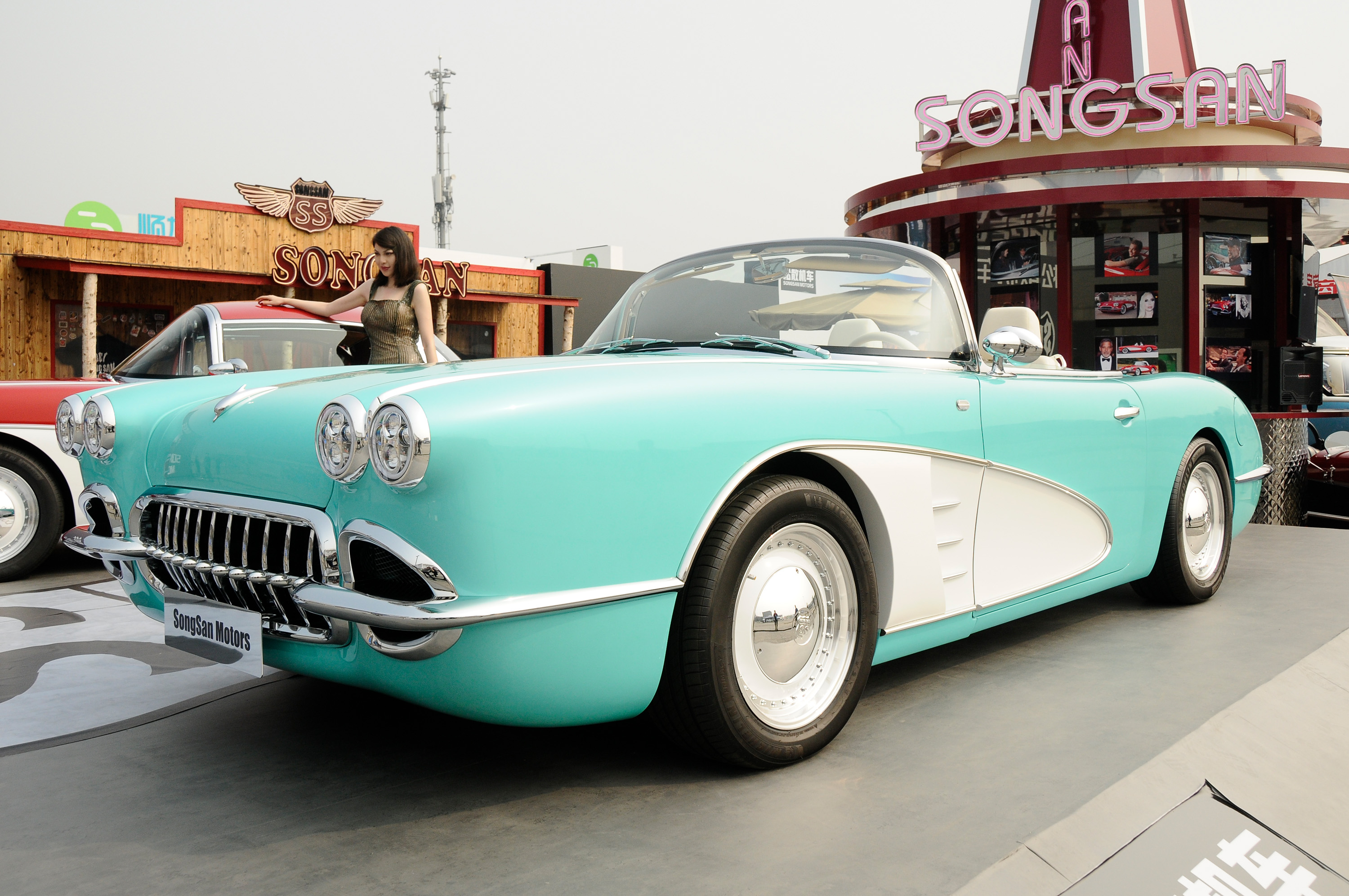 Dropping the microphone at the annual Beijing show, local Songsan Motors announced that for the equivalent of $86,000, it will now offer the SS Dolphin, an almost exact plug-in hybrid copy of the four-headlamp 1958 Chevrolet Corvette C1. Powered by the combination of a 1.5-liter turbo engine and an electric motor fed by a 16-kilowatt-hour battery pack, the SS Dolphin comes with LED lights and a removable hardtop on a body that’s 11.8 inches longer and 3.7 inches taller than Chevrolet’s sports car penned over six decades ago. Thanks to its combined output of 315 horsepower, it’s faster too, with a zero to 62 mph time rumored to be under five seconds. Back in 1958, the same stunt took the V8-powered C1 around seven seconds.