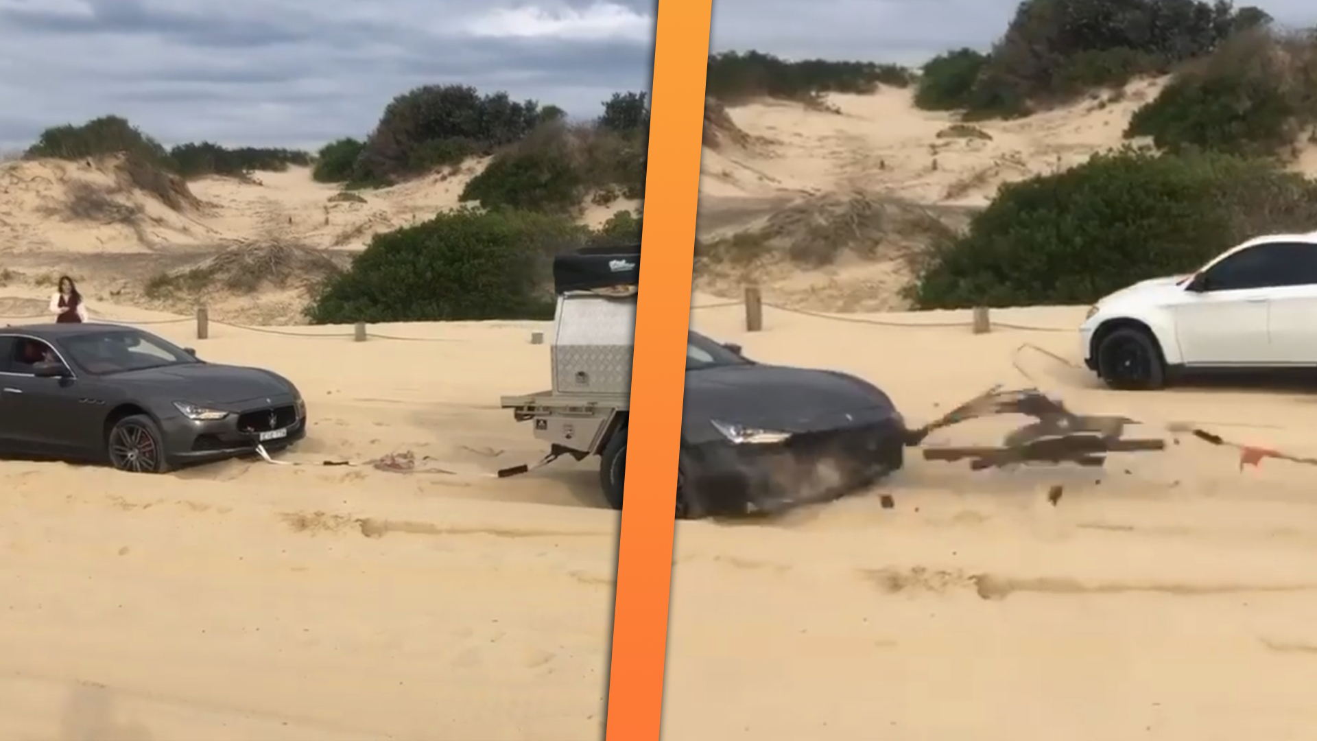 In today’s episode of “well, you sort of brought this upon yourself,” we have this very beached Maserati Ghibli, stuck on a beach. I don’t know who thought that a Maserati on short-sidewall street tires was baaaaaasically a dune buggy, but here we are.
