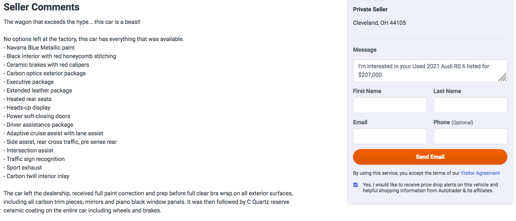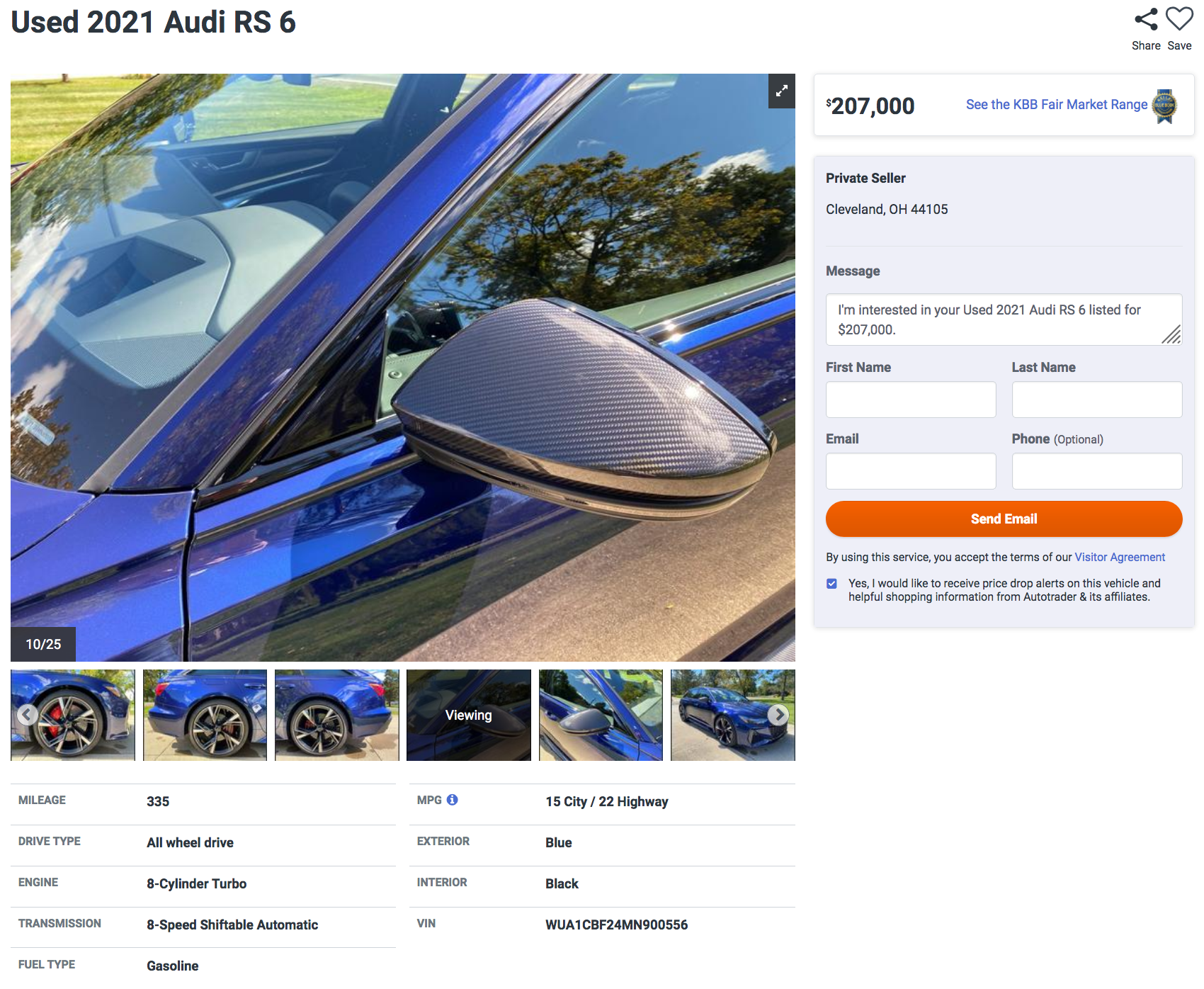 Mind you, the seller claims this car “has everything that was available,” but c’mon, bud. The one-of-25 RS6 Avant RS Tribute has an MSRP of $137,845, and that’s new. This seller is asking $207,000 for a car that already has 335 miles on it, per the listing.