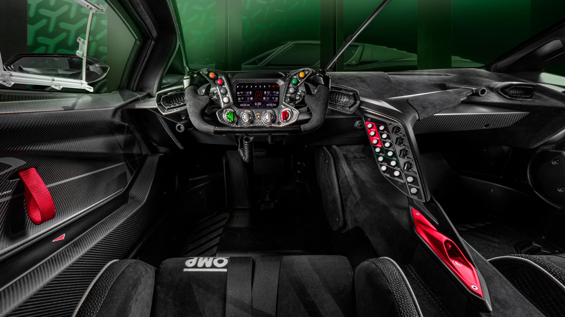Of all the GT3-shaming, ultra-limited edition track specials of late, none have a powertrain quite like the new Lamborghini SCV12 Essenza. The McLaren Senna GTR a a 4.0-liter twin-turbo V8 tuned to 814 horsepower and 590 pound-feet of torque, the Brabham BT62 a 700-horsepower naturally aspirated 5.4-liter V8, and the Ferrari comes close with its 1050-horsepower LaFerrari-based FXX K Evo with a 6.3-liter naturally aspirated Tipo F140 V12 with hybrid and HY-KERS system onboard. Lastly, Gordon Murray’s T.50s and its 12,100rpm V12 tuned to 730 horsepower are a few years away, meaning that the Lamborghini Squadra Corse’s 830-hp 6.5-liter V12 is currently the ultimate in pure 12-cylinder fury.