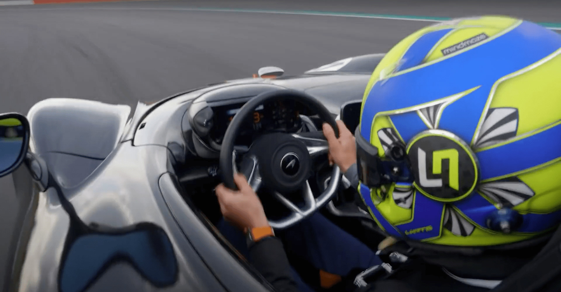 To demonstrate how fun the power of a twin-turbo McLaren V8 in a rear-drive car weighing under 2,640 pounds can be, McLaren turned to Norris. While the 20-year-old British driver couldn’t quite remember the script the PR team gave him, the Elva’s handling characteristics definitely put a huge smile on his face.