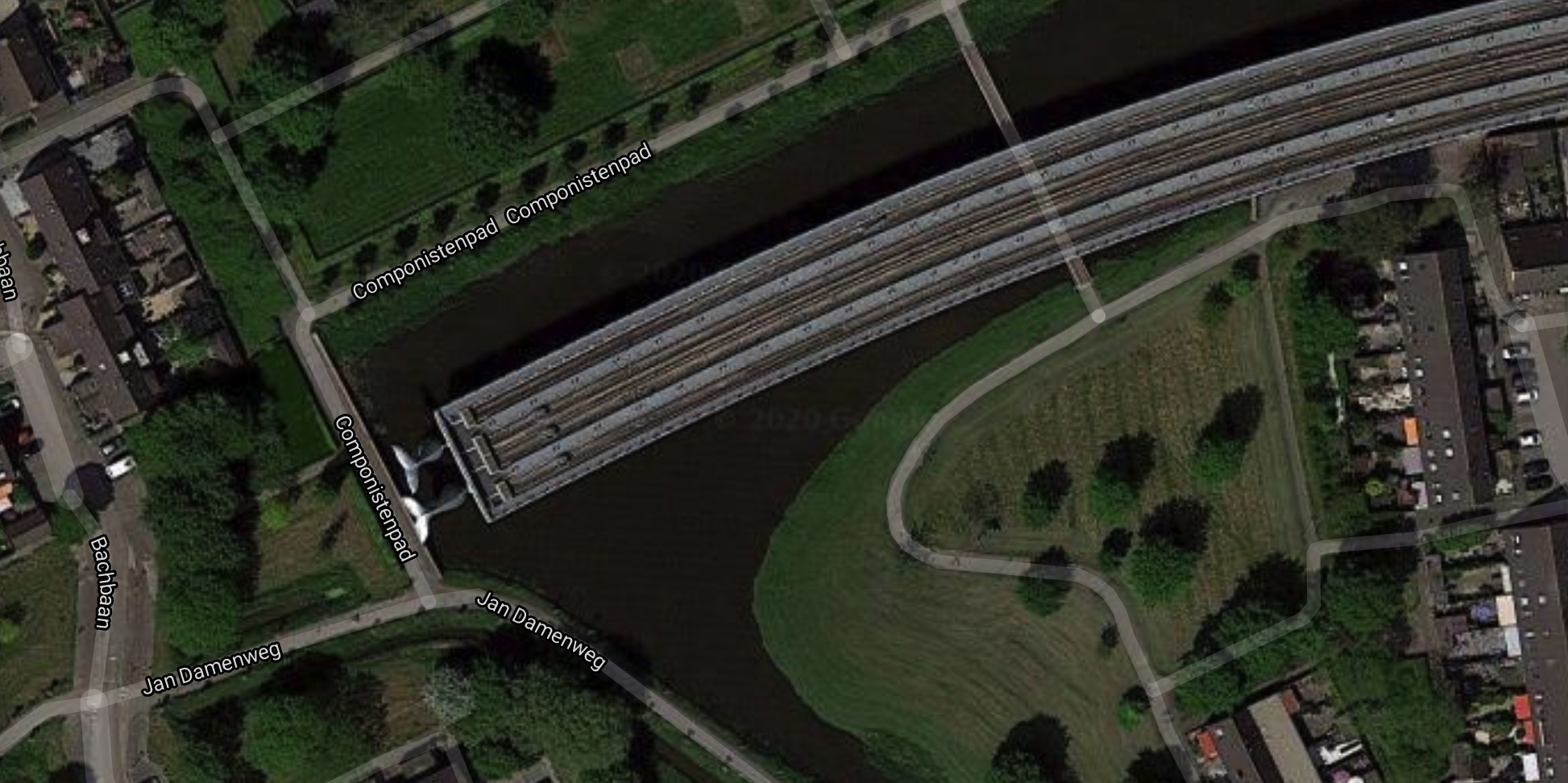 The rolling stock landing on what’s also known as “the tail track” is Bombardier’s 5400 Series train, and it was delivered to the Rotterdam metro in 2002. The full 100-foot-long train weighs around 46 tons, so it’s a good thing that most of it stayed on the platform itself. Being a station in the Netherlands, the terminus of De Akkers of course ends above water.