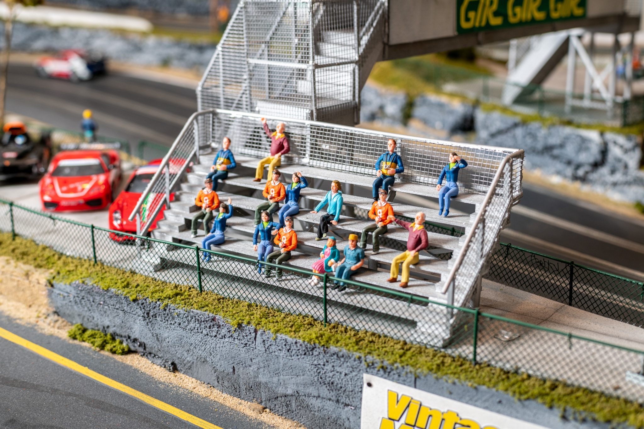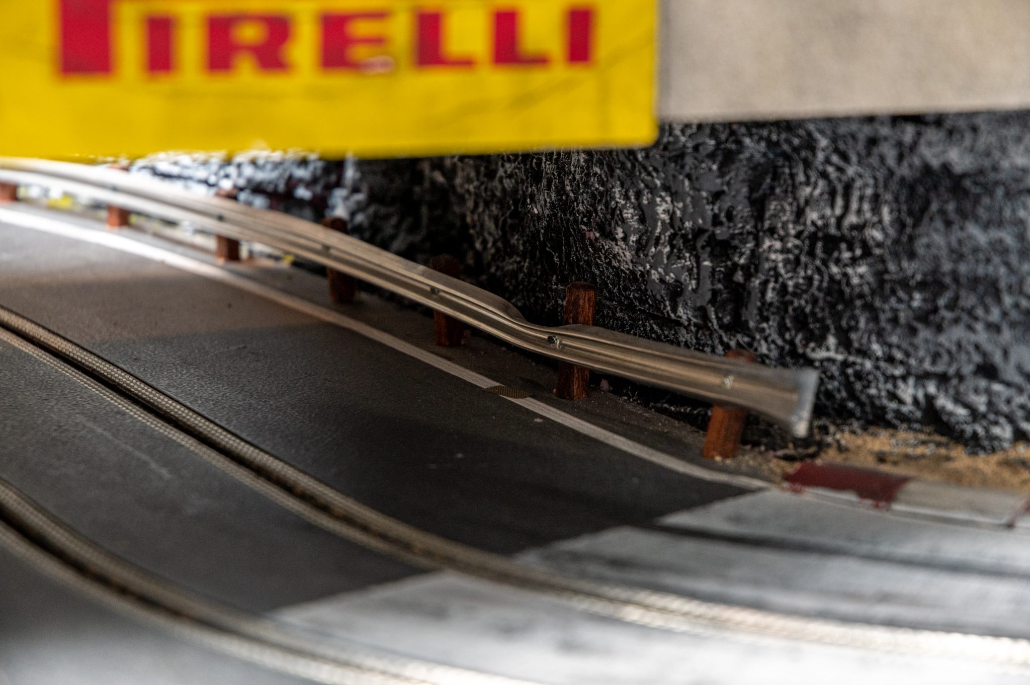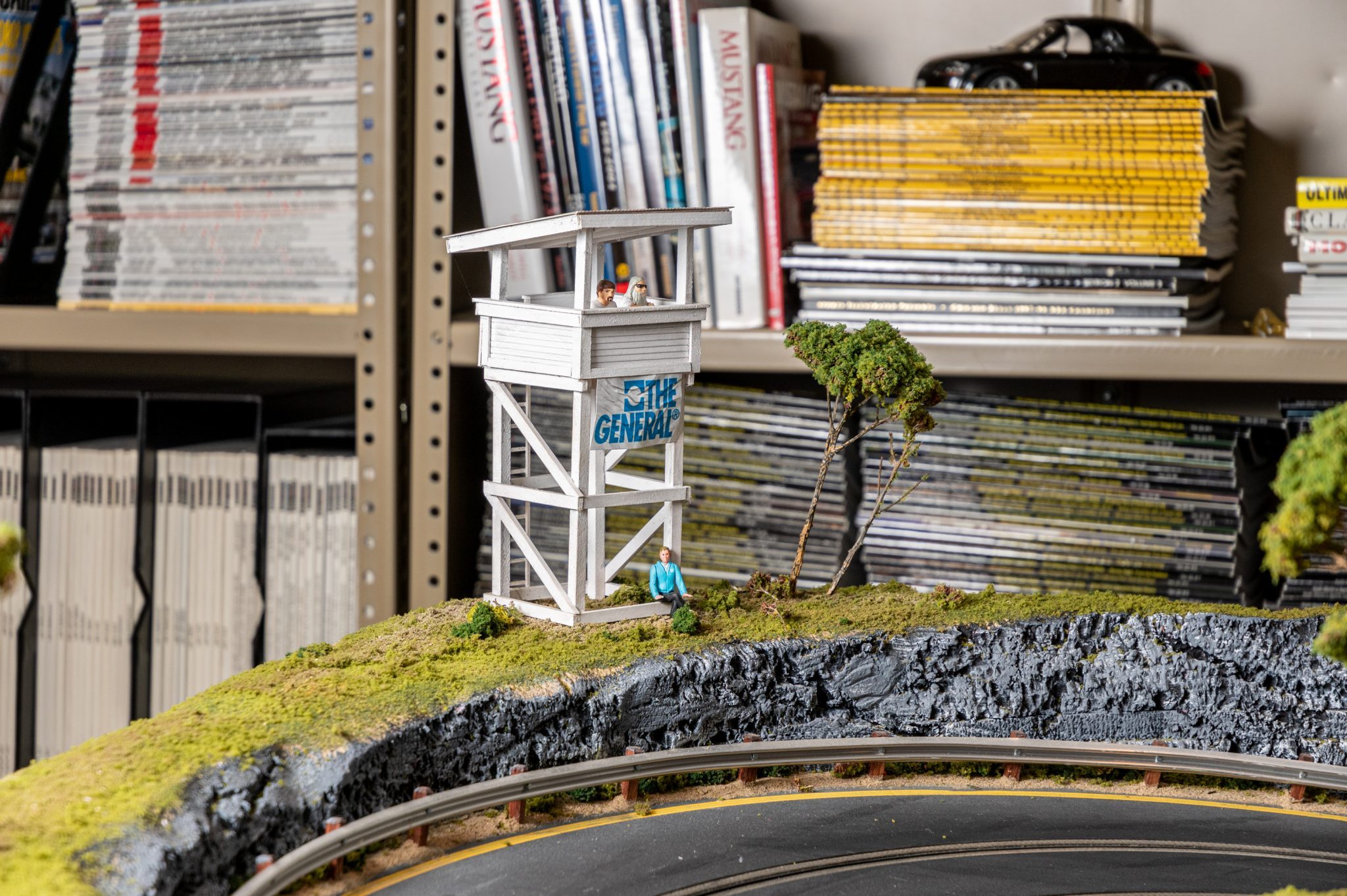 When you’re finished gawking at the miniature greenery, the track supports up to three racers, coming with three controllers and a total of 25 1:32-scale slot cars including Ferrari F430 Challenges, Porsche 911 Cup Cars, Le Mans racers new and old, and a street-spec McLaren P1. Apparently inspired by Virginia International Raceway, the elaborate slot car track’s current owner has dubbed this thing the Gussack International Raceway, or GIR for short.