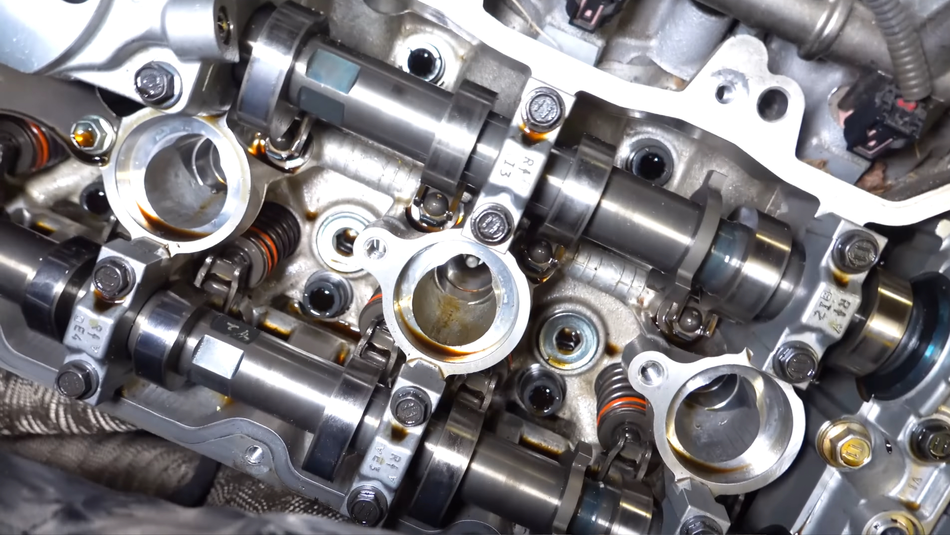 Fortunately for us, pulling the valve cover off the head opens up the whole top end of the engine at about 12:30 in. Clearly, this is as much a testament to Wrench Every Day’s routine maintenance as it is to Lexus-ota’s engine design, but it’s pretty spotless in there, even with the mileage, age, hard use and everything. There isn’t the kind of sludgy buildup seen in “Just Rolled Into the Shop” specials, either.