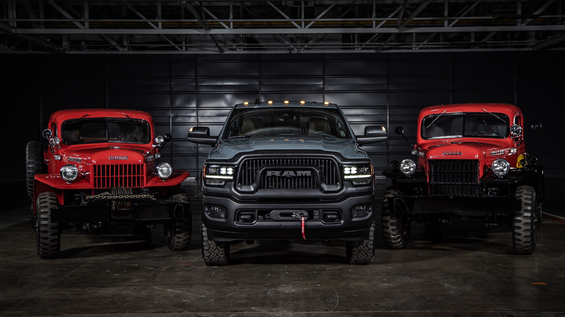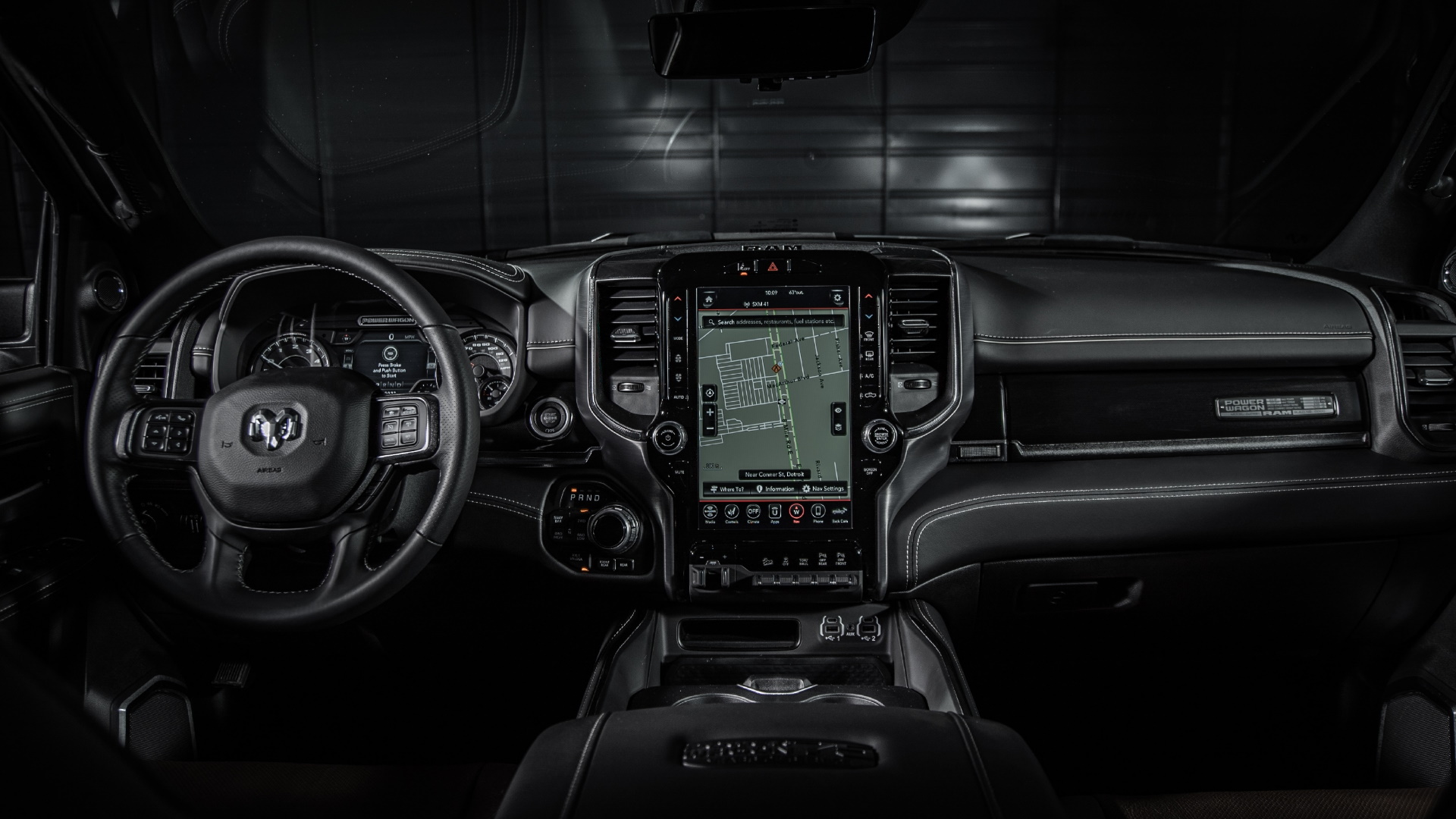 The 12-inch infotainment screen on the center stack also has a brand new Off-Road Pages display containing inclinometers for the vehicle’s roll and pitch, and a gauge that displays ride height. A 750-watt, 17-speaker sound system is also standard, which is actually only a little bit better than the original 1945 Power Wagon’s 16-speaker system. Kidding, it’s a joke!