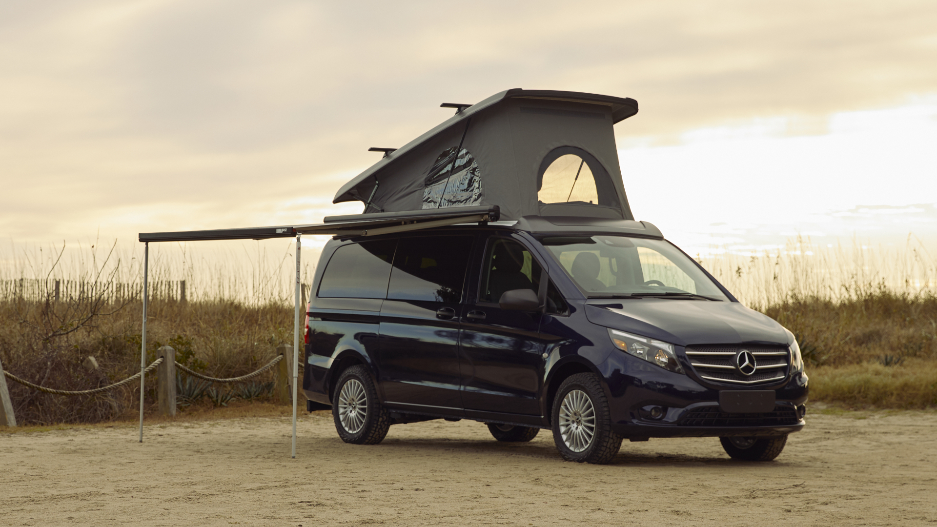 Van fans always ooh and aah at the great variety of camper vans available abroad. Volkswagen Transporters! Citroën Jumpers! Mercedes-Benz Vitos! They all look so nice decked out with retractable awnings, bike racks and pop-tops so long as they’re not in the left lane of the autobahn. Now we’re finally getting that last one, as Mercedes-Benz is offering its midsize Vito van—known as the Metris over here—up for camper conversions.