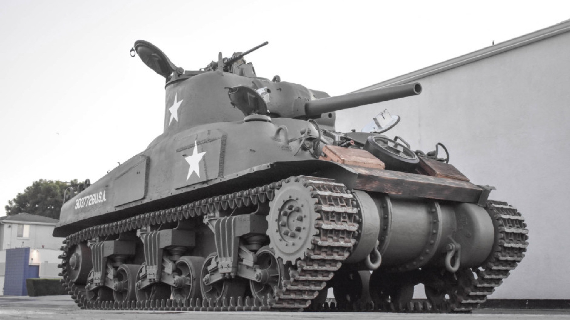 Up for auction now is a 1943 M4A1 Grizzly, a Canadian version of the Sherman medium tank made with a cast single-piece upper hull. This tank has a Continental-built Wright Whirlwind 975-cubic-inch nine-cylinder radial engine hooked up to a Spider five-speed manual transmission. A single updraft carburetor fed by dual top-mounted intakes allow the tank to have a 40-inch wading depth.
