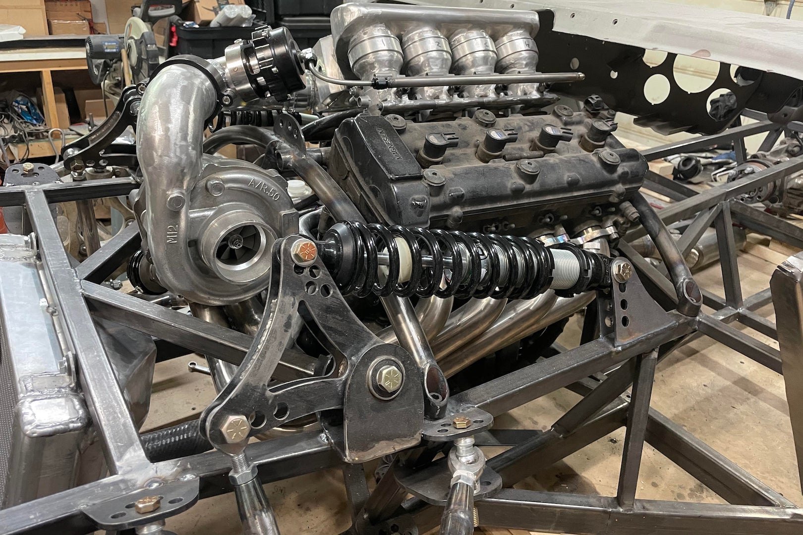 The project of a fellow who goes by the name DJ on his YouTube channel Limitliss, this Willy-busa (forgive me) has been in the works for over a year, and with the exception of the cowl behind the hood, almost every component has been produced by hand. That goes for everything from its boxed steel frame and sheet metal body to all the piping and ducting on its Suzuki-sourced four-cylinder. In all, the 1.3-liter produces more than triple the stock 2.2-liter Go Devil’s 60 horsepower in naturally aspirated form. With a modestly sized turbo on it, however, and all the forged internals, engine management, and intercooling needed to support it, this motor has the capacity for 800 horse—more than 13 times the factory output.