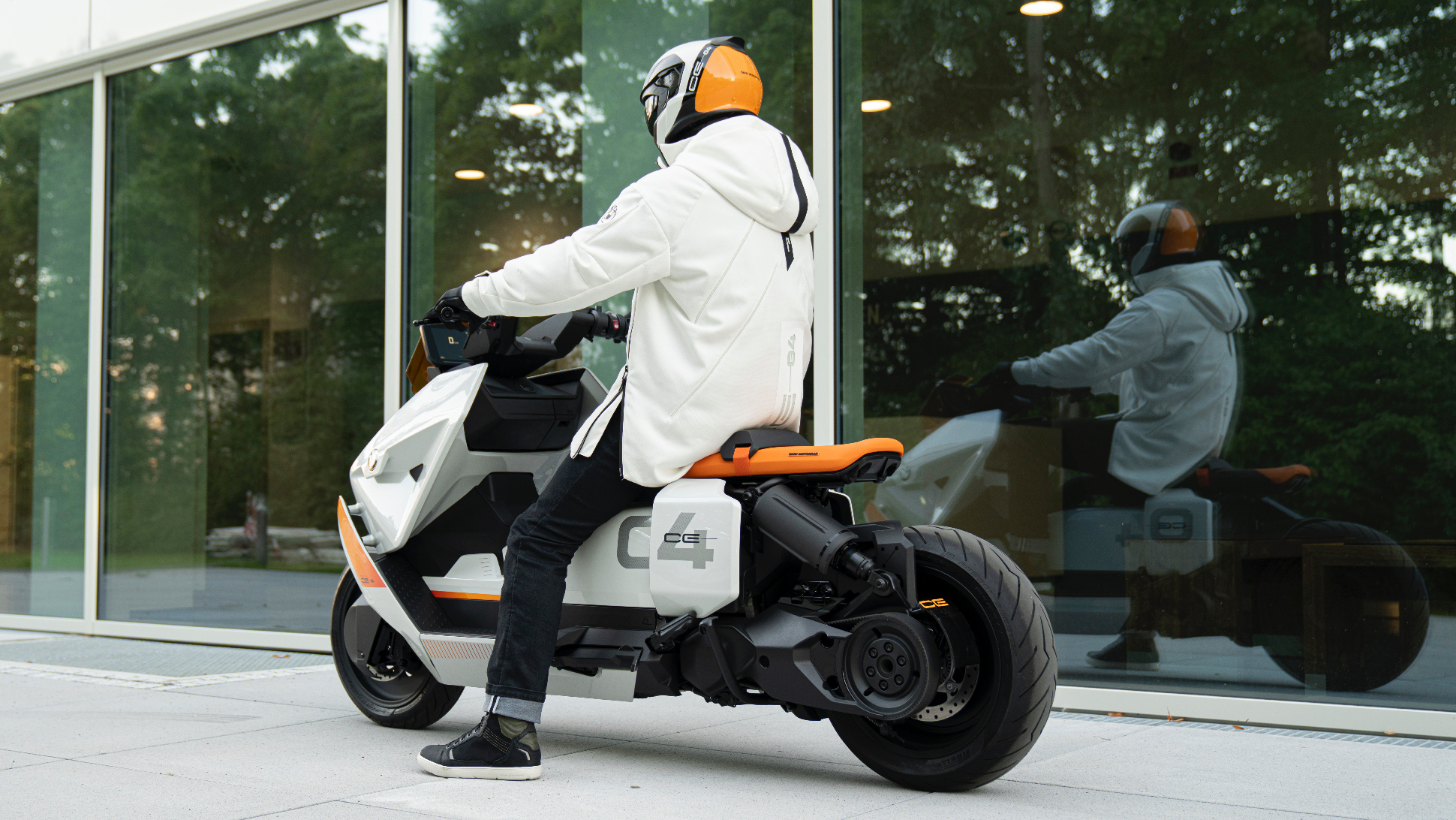 Most importantly, the Motorrad Definition CE 04 sounds like a delightfully functional vehicle. The drivetrain is very compact and the flat battery is mounted in the bottom of the scooter, allowing for a low center of gravity that should be easier to ride and tons of storage up top. Its illuminated under-seat storage area has a door that opens up horizontally and enough room to stash a helmet.