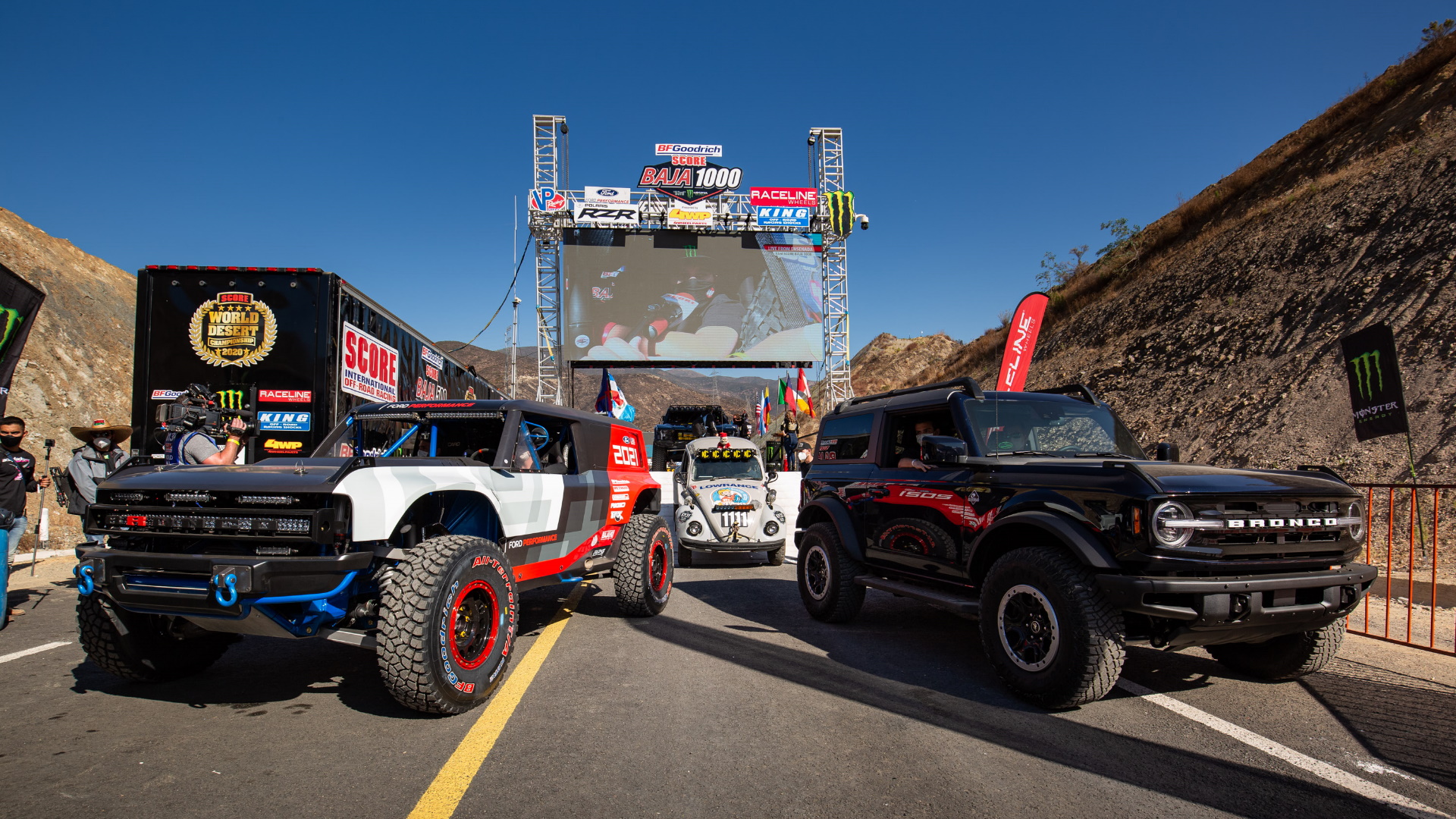 Having traversed 580 miles of last year’s Baja 1000 when a mechanical failure ruined the Ford Bronco R’s attempt at finishing the iconic race, the Blue Oval is now returning to Mexico for another shot at completing the 1,000-mile off-road endurance race, which starts today. This time around, however, the team is joined by a pre-production 2021 two-door Bronco, a 2021 F-Series Super Duty Tremor, and an F-150 Raptor as support vehicles.