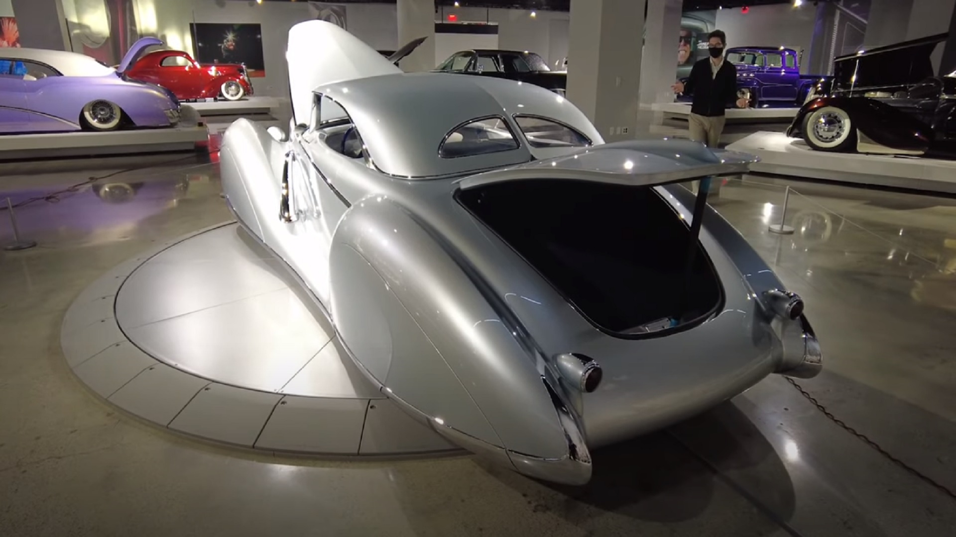 The Metallica frontman lent his most-prized custom vintage cars to the Petersen and these are less vehicles than they are works of art. Much like Metallica’s genre-bending music, the cars in the Reclaimed Rust exhibit are beyond what you’d expect. And each one of them has a name. As Bodell leads the tour past the Crimson Ghost (a 1937 Ford coupe), Iron Fist (1936 Ford), Voodoo Priest (1937 Lincoln Zephyr), Black Pearl (1948 Jaguar), you can’t miss the stunning Art Deco touches like massive teardrop fenders and sweeping coach doors. You could get lost in there for days and never want to come out.
