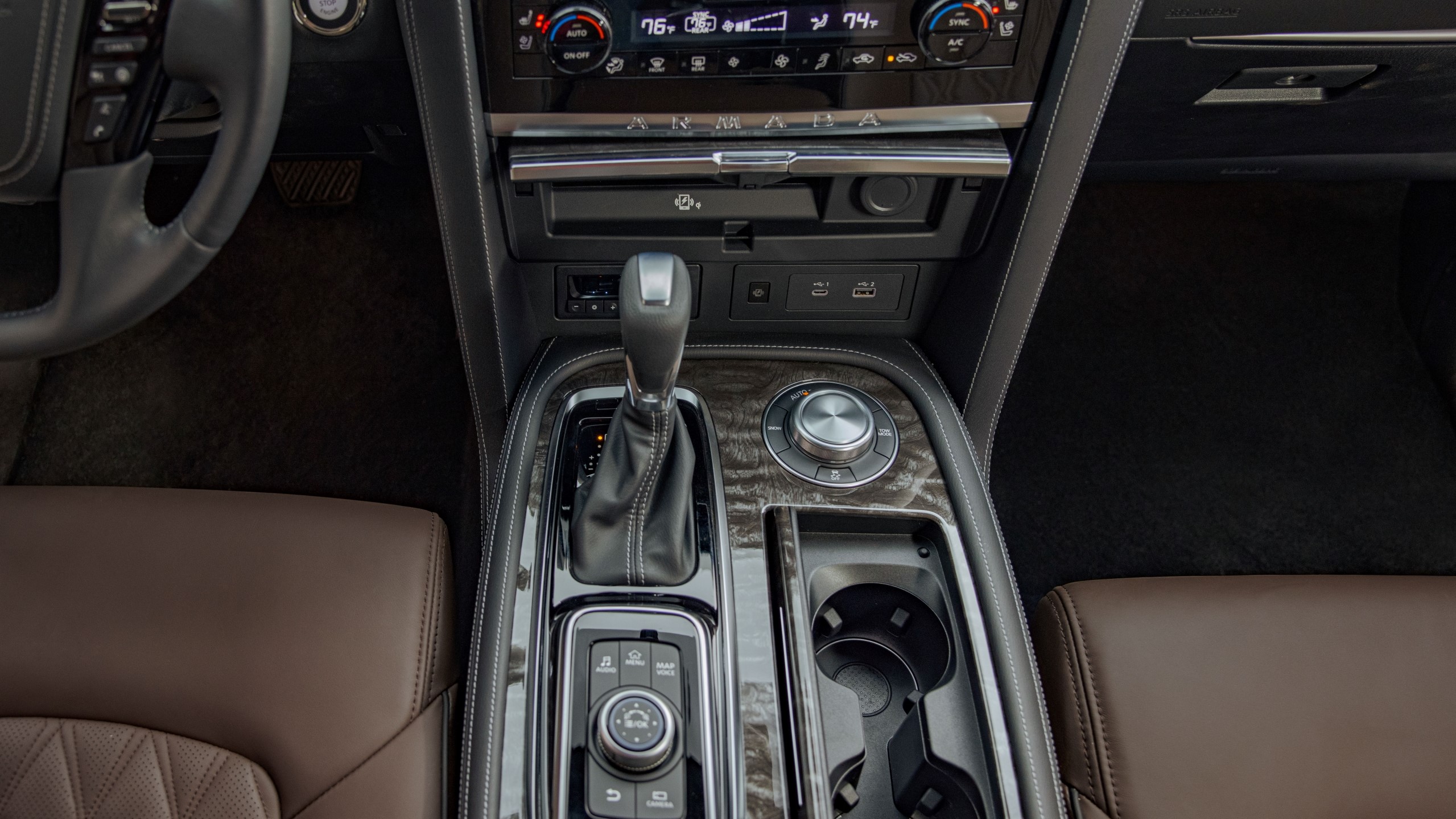 Using a seven-speed automatic gearbox, both the 2WD and 4WD Armada will tow up to 8,500 pounds, just like last year’s model. To make the actual act of towing easier, however, the Armada gains a Trailer Brake Controller with tow hitch receiver and Trailer Sway Control, a system that applies the brakes when it automatically detects sway.