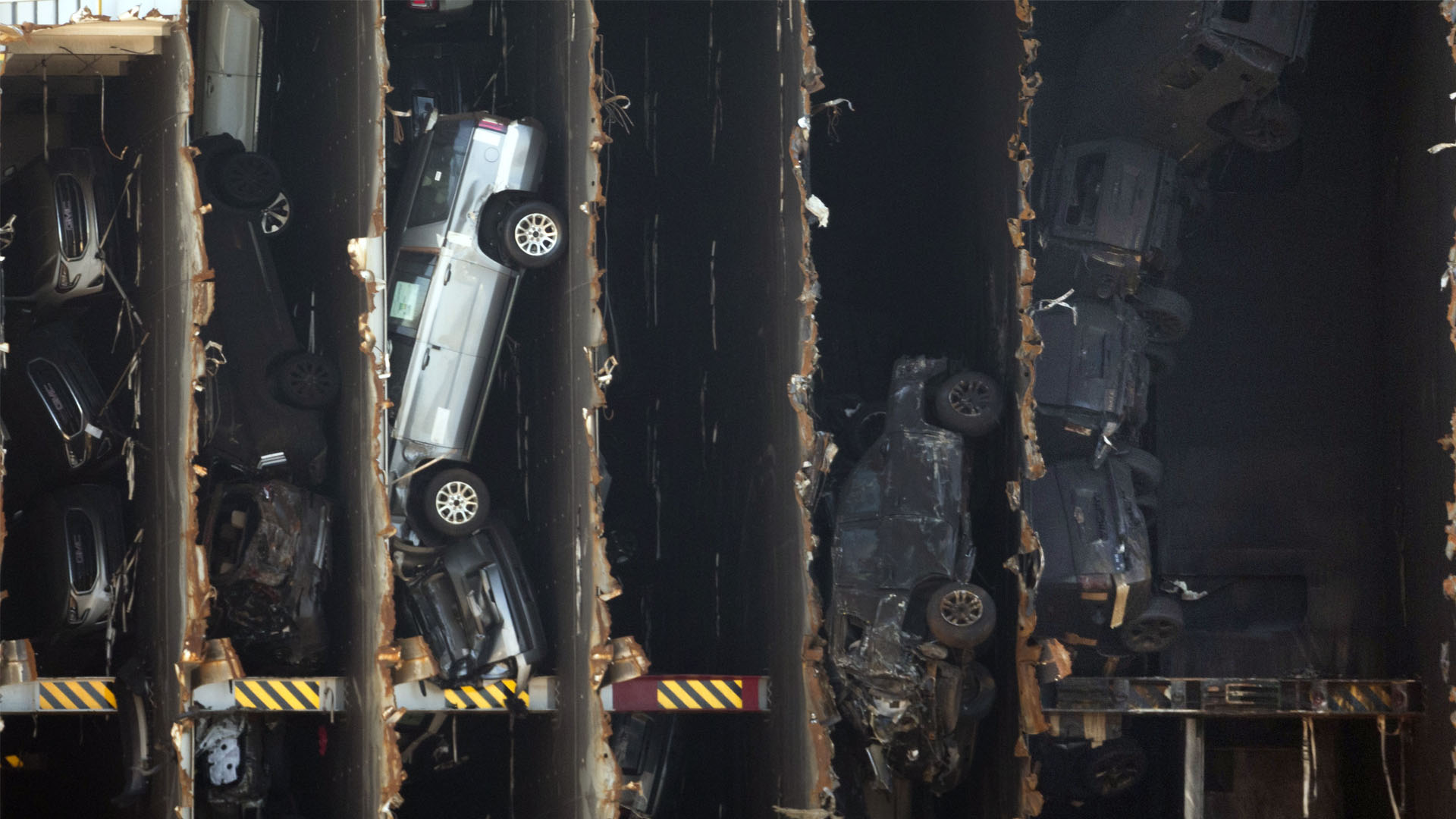 a forensic report compiled by the Coast Guard that attempts to break down the reason for the ship’s snafu. In a nutshell, there are a few reasons why it happened, but one of the most glaring is pretty rudimentary: The ship was top-heavy. Smaller Kia Fortes and Hyundai Accents were unloaded when the ship ported in Brunswick and they were replaced with Kia Tellurides which are, of course, much heavier than the compact Fortes and Accents. This may have not been such an issue if the trucks were placed on a lower deck, or if 1,500 tons of ballast water hadn’t been emptied from the ship, but they were loaded onto the 12th deck. In total, the Golden Ray has 13 decks.