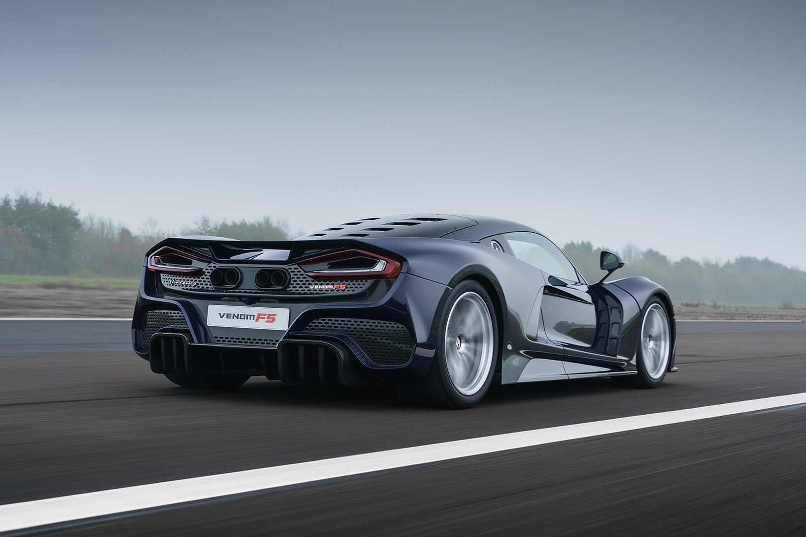 Named after the most destructive class of tornado, the Venom F5 is a hypercar hand-built on a carbon fiber tub from KS Composites in Britain. Hennessey told Car and Driver that the first example was finished in Britain, but that the remainder of the 24-unit production run will be assembled at a new facility in Sealy, Texas, where the performance shop will mate that composite tub to a twin-turbo V8 it calls “Fury.”