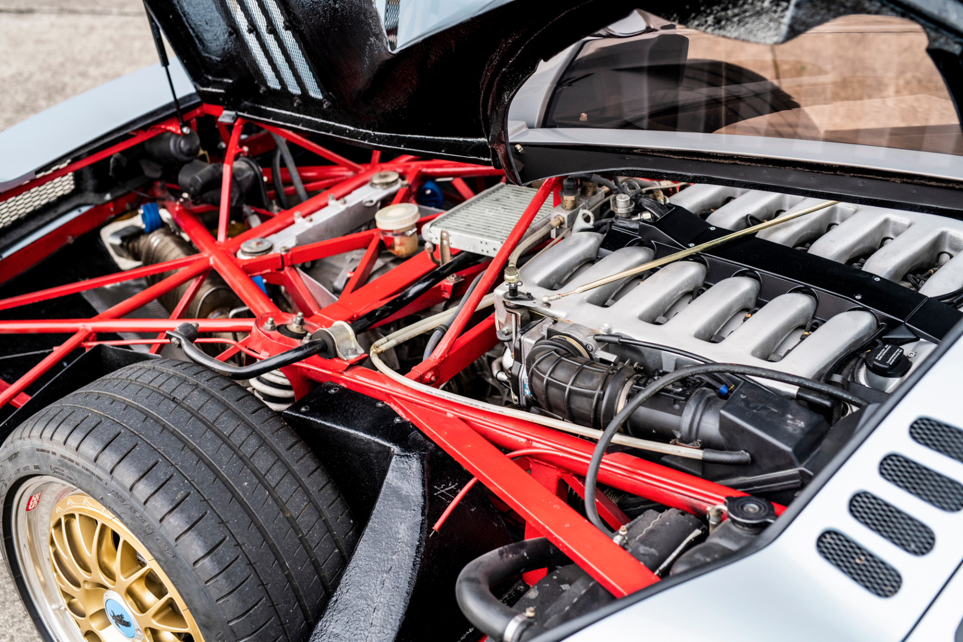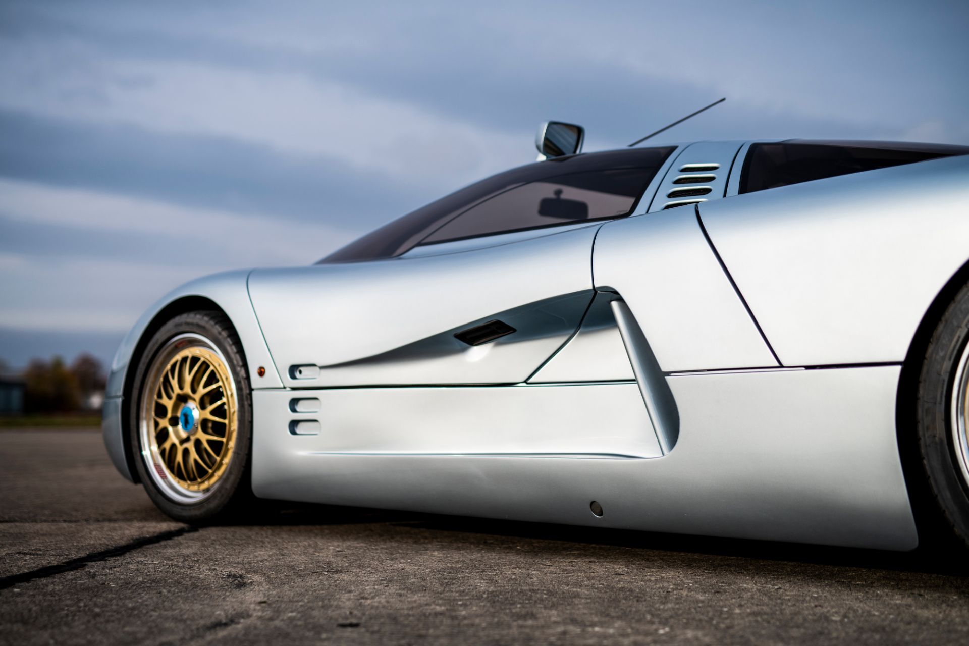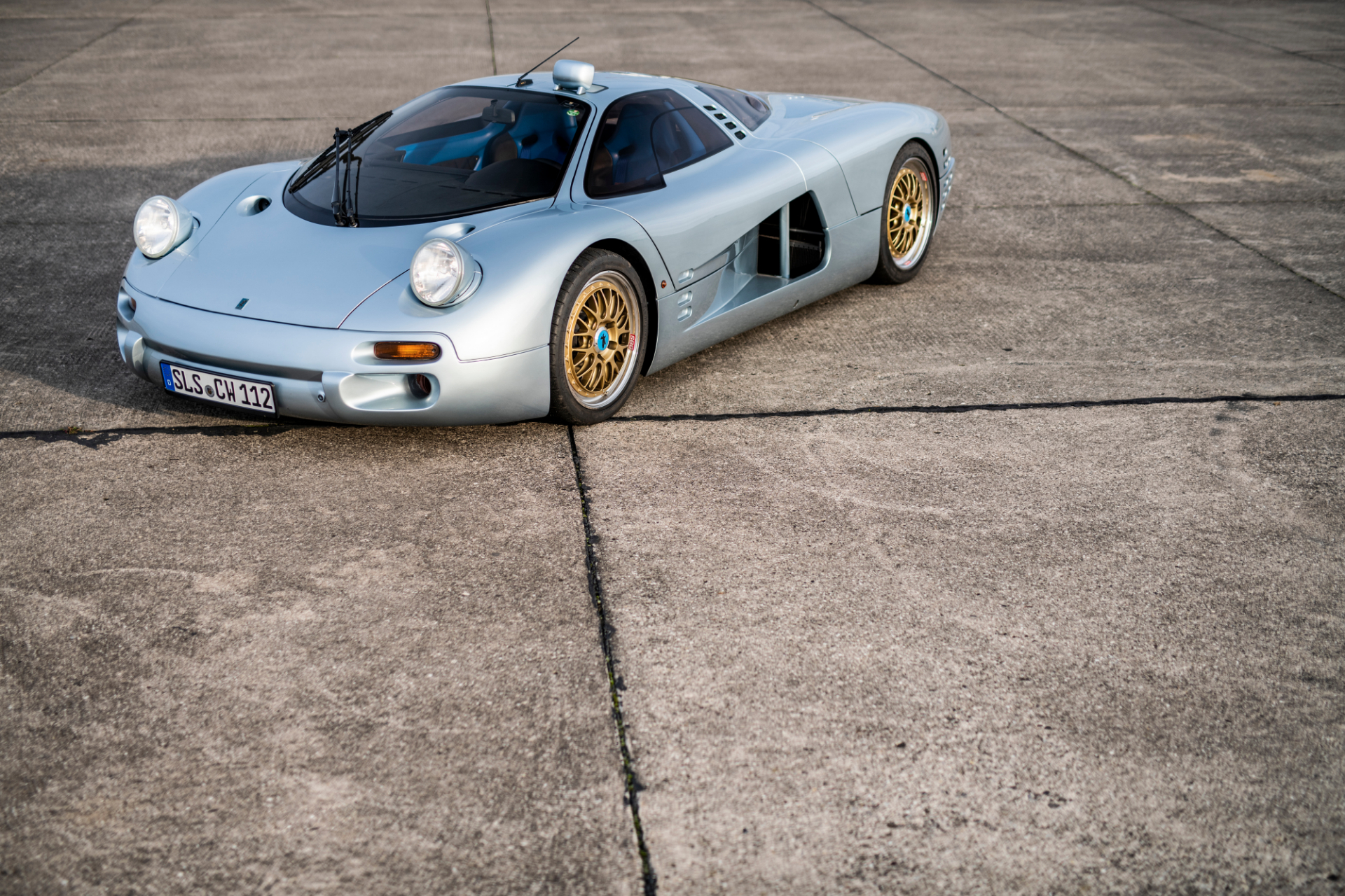 A Swiss consortium rescued the Commendatore 112i, featuring it at the Frankfurt auto show in 1999 as the “Silver Arrow.” There, the shiny gold two-piece BBS wheels were ditched for five twin-spoke alloys and its unique periscope mirror was ditched in favor of Mercedes CLK-GTR-style wing mirrors. Isdera reacquired the car in 2016 and returned it to its original spec, which is how it will sell.