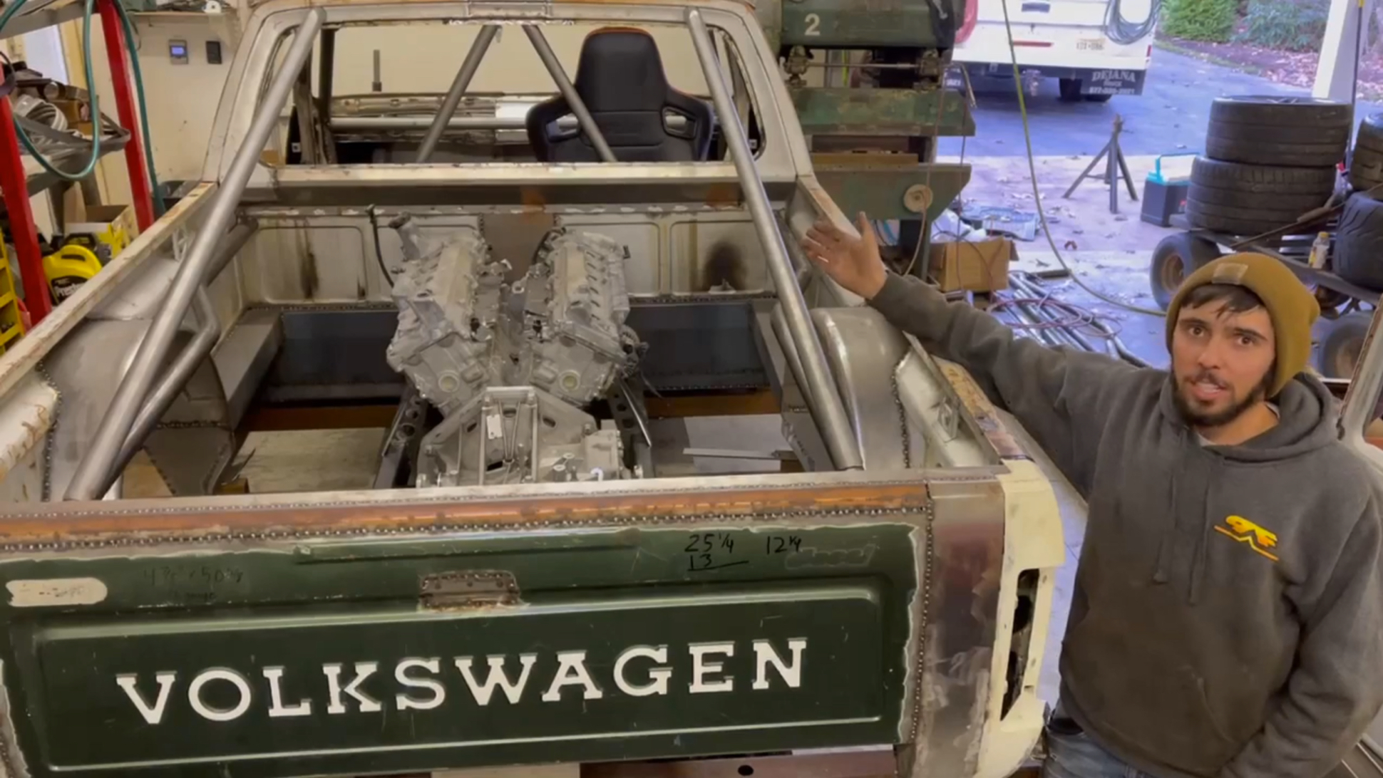“Big engine in a small car” is a phrase that instantly grabs our attention, like moths to a flame, or maybe fire ants to a sugar-coated Dorito. “Big engine in the middle of a small pickup” makes us want to drop everything and stare because something is clearly a glitch in reality. Behold! The single greatest Volkswagen pickup build I’ve ever seen.