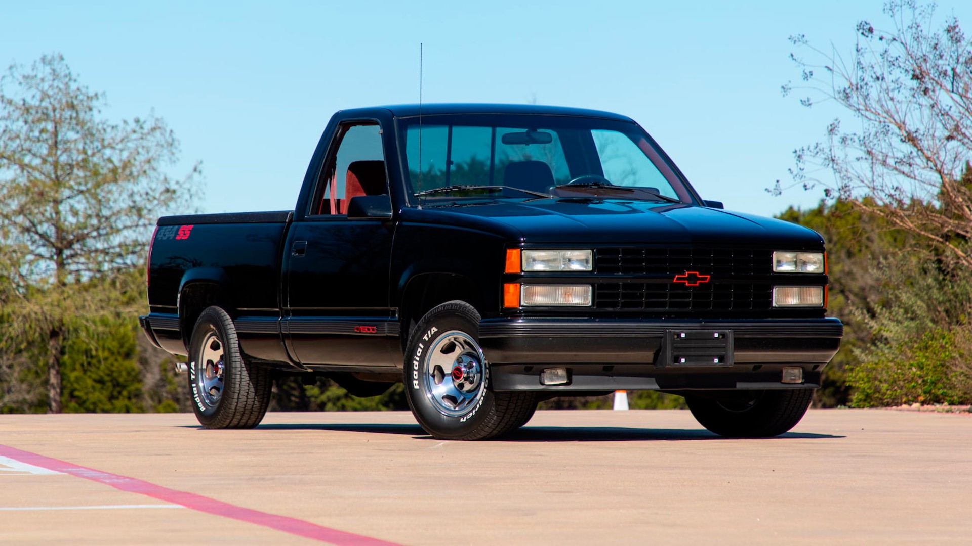Onto another GM performance special. The 454 SS was based on Chevy’s two-wheel-drive half-ton truck, albeit lowered and riding on 15-inch wheels with meaty street tires. It dropped the normal 350-cubic-inch small-block for a 454 big-block that made 230 hp and 385 pound-feet of torque, all while wearing a menacing black scheme.